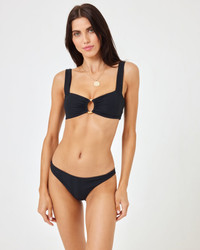 Look poised, polished and pretty in the Willow Bikini Top. This bralette style top has a centerpiece ring detail and extra-thick shoulder straps for a super comfy fit. - Bralette Style - Ring Detail - Thick Shoulder Straps - Pointelle - Removable Pads - Size XS-XL - 89% Nylon, 11% Spandex - Like all delicates, shape, color and fit are best preserved if hand washed in cold water. Lay flat to dry. - Style # PTWLT23 FIT - Coverage: Medium - Support: Medium - Adjustability: None - Model Measurements: Diana, size S - Height 5'9, Bust 31", Waist 23", Hips 34"
