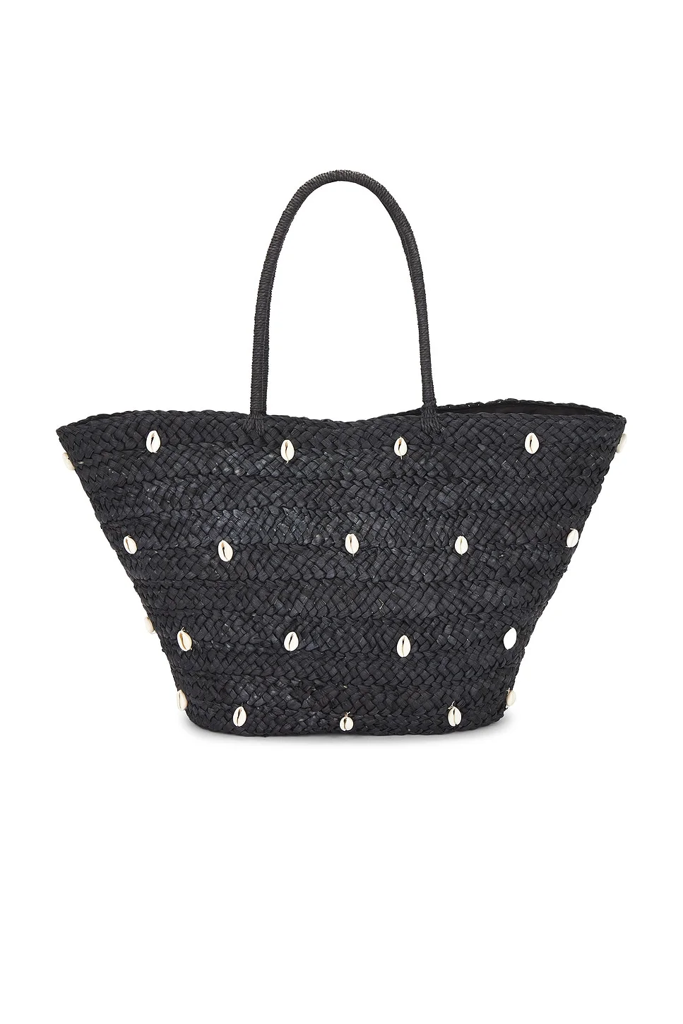 - Woven raffia exterior with textile lining - Magnetic snap closure - One main compartment - One interior slip pocket - Shell accents throughout - Measures approx 25" W x 13.5" H x 6.5" D Top handle with a 10" drop - Revolve Style No. LSPA-WY60 - Manufacturer Style No. LSBAL25