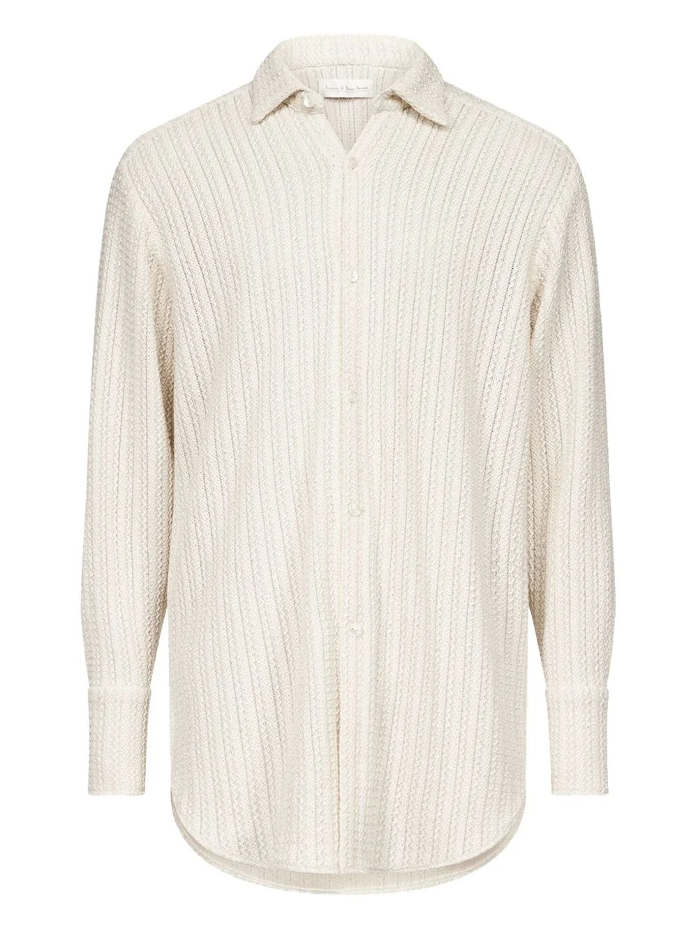 braided shirt Highlights - Cream white - Front button fastening - Long sleeves - Buttoned cuffs Made in France Composition Cotton 73%, Linen/Flax 17%, Polyester 10% Washing instructions Hand Wash