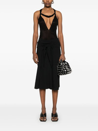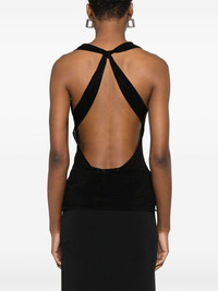 Carrie top Highlights - Black - V-neck - Crossover strap detail - Knot detailing Made in France Composition Cupro 92%, Spandex/Elastane 8% SIZE & FIT Model measurements Height 5 ft 11 in(1.8 m) Bust/Chest 31.49 in(80 cm) Hips 36.61 in(93 cm) Waist 24.4 in(62 cm) FittingInformation Designed for a close fit throughout Made from a lightweight stretch fabric, this piece offers elasticity and flexibility when worn Washing instructions Dry Clean Only