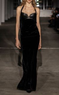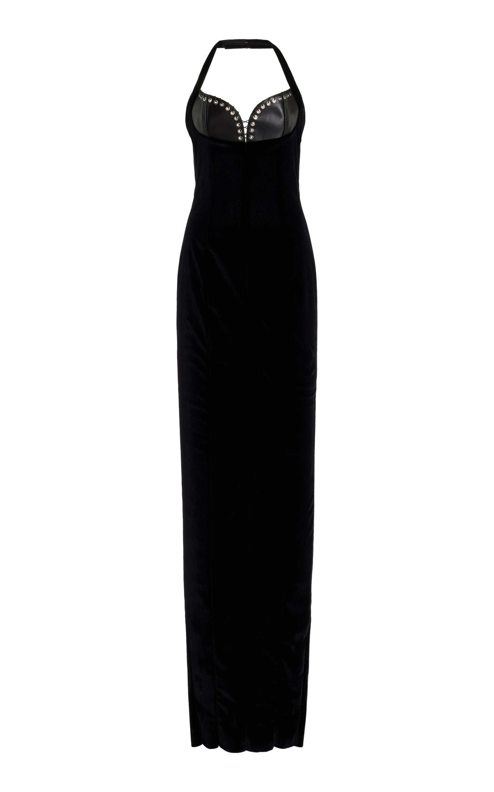 PRODUCT DETAILS - Halter neck, bustier bodice, maxi hem - Zip fastening - Unlined - Composition: 90% Polyester, 10% Polyurethane - Color: Black - Dry clean only - Featured in the Fall/Winter '24 collection