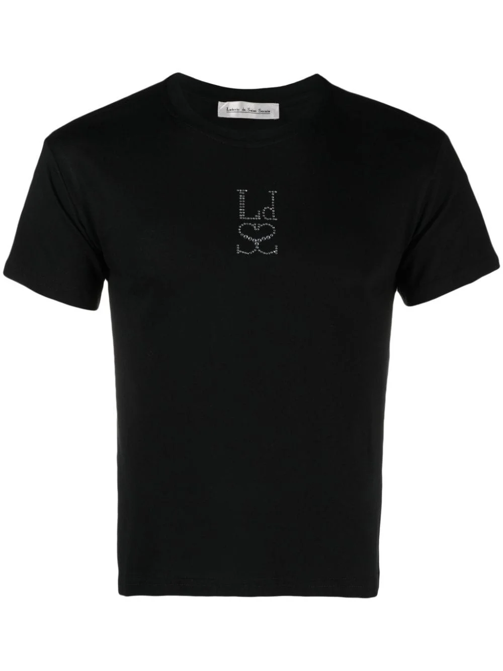 logo-embellished organic cotton T-shirt Ludovic de Saint Sernin presents this classic black T-shirt in organic cotton jersey. It's elevated with the label's iconic logo in glistening crystals. Highlights - Black - Organic cotton - Crystal embellishment - Crew neck - Short sleeves - Straight hem - When buying this unisex item, keep in mind that it is graded in standard men's sizing. Imported Composition Organic Cotton 100% SIZE & FIT Model measurements Height 5 ft 10 in(1.79 m) Bust/Chest 32.67 in(83 cm) Hips 34.25 in(87 cm) Waist 24.4 in(62 cm) FittingInformation This unisex piece is designed for a slim fit whether you usually select women's or men's sizes Made from a midweight non-stretch fabric, this piece offers minimal elasticity when worn