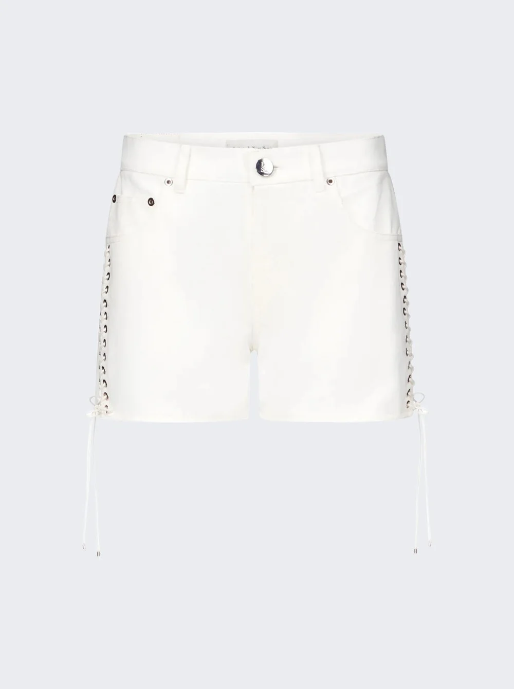 Details - Mini length - Belt loops - Five pockets - Logo patch to the rear - Eyelet detailing - Lace up on the sides - Zip and button closure - Care according to label - Material: 100% Cotton - Model is 5'9"/175cm and is wearing a size US26 Brand Style: CO-ST003-W-DEN0003 Designer/Brand: LUDOVIC DE SAINT SERNIN