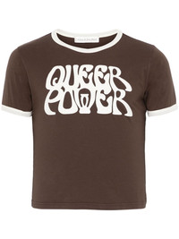 Queer Power T-shirt Highlights - Chocolate brown - Organic cotton - Lightweight jersey - Logo print to the front - Crew neck - Short sleeves - Ribbed cuffs - Straight hem - When buying this unisex item, keep in mind that it is graded in standard men's sizing. Imported Composition Organic Cotton 100% SIZE & FIT Model measurements Height 5 ft 10 in(1.77 m) Bust/Chest 31.1 in(79 cm) Hips 34.64 in(88 cm) Waist 24.01 in(61 cm) FittingInformation This unisex piece is designed for a slim fit whether you usually select women's or men's sizes Made from a midweight non-stretch fabric, this piece offers minimal elasticity when worn