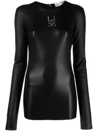 black lambskin rhinestone embellishment crew neck rear zip fastening long sleeves Size & Fit Model Measurements: Height: 1.78 m Bust/Chest: 81.0 cm Hips: 93.0 cm Waist: 59.0 cm Model wears size XS Fabric and Care Designer Style ID: TP003ULEA002 Designer Colour: BLACK Composition: Lamb skin 100% Washing instructions: Specialist Cleaning Made in Turkey