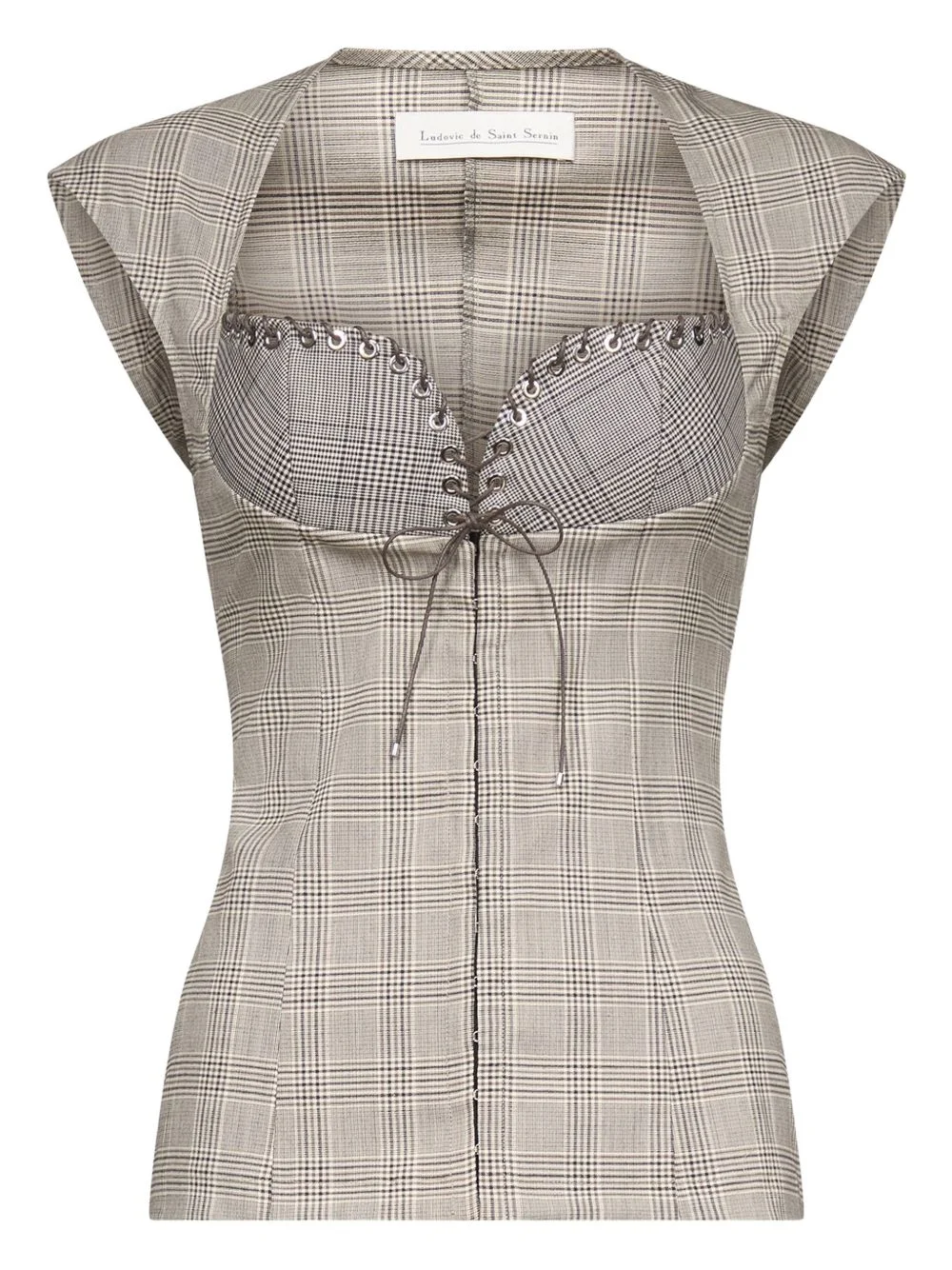 Robin top Highlights - Grey - Prince-of-wales check - Lace-up detail - Sleeveless - Corset-style construction - Close fit Made in France Composition Virgin Wool 52%, Polyester 43%, Elastane 5% Washing instructions Read Manufacturer Guidelines