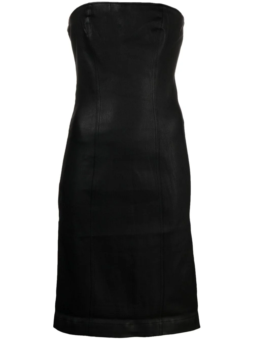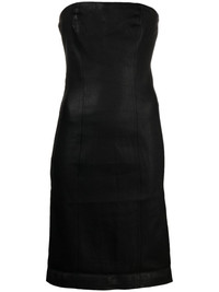 strapless leather minidress Highlights - Black - Lambskin - Smooth grain - Concealed side zip fastening - Strapless - Two thigh-high side slits - Thigh-length Made in France Composition Lamb Skin 100% SIZE & FIT Model measurements Height 5 ft 9 in(1.76 m) Bust/Chest 33.07 in(84 cm) Hips 38.58 in(98 cm) Waist 24.8 in(63 cm) FittingInformation Designed for a close fit throughout Soft leather has a supple and smooth construction offering some flexibility This piece fits true to size – take your usual size