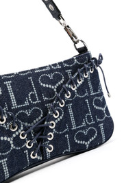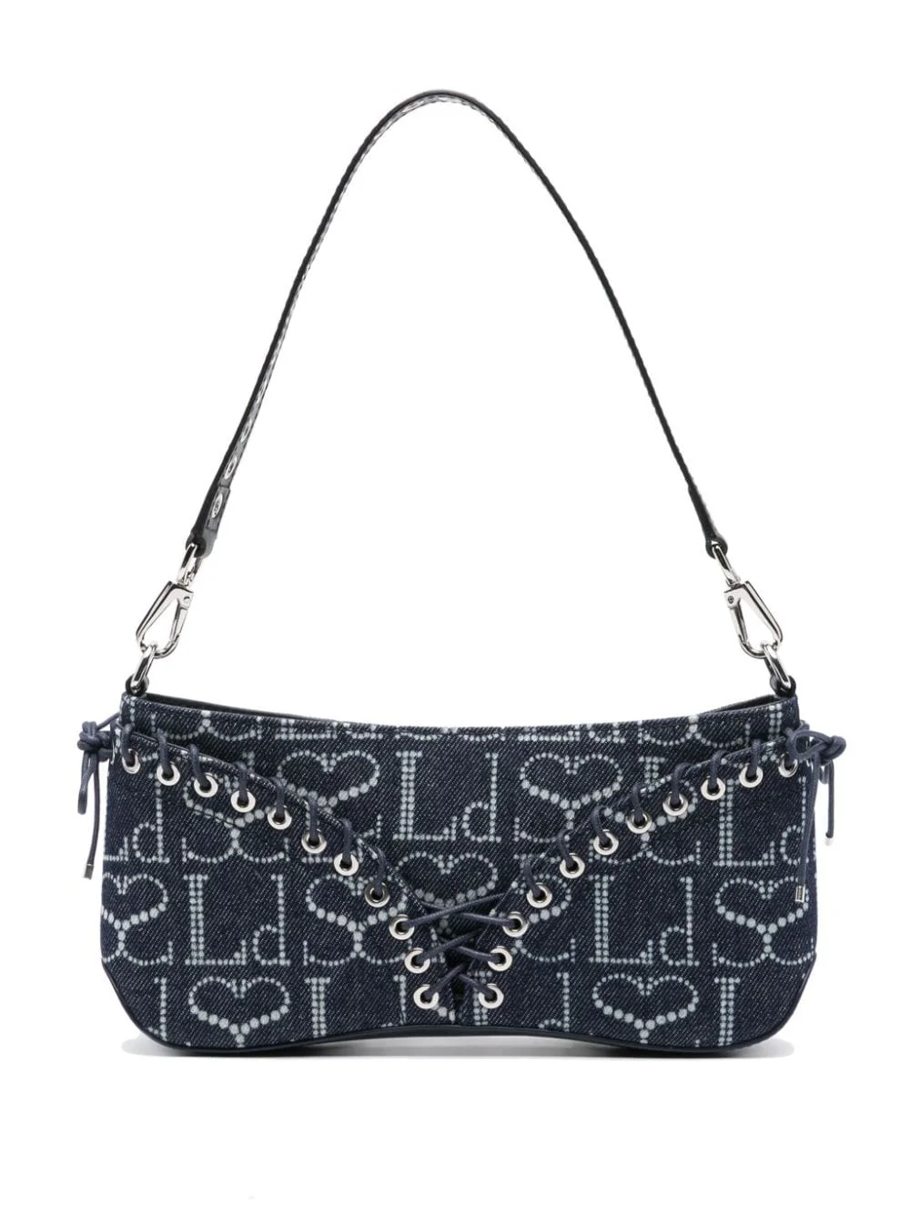 The Cleavage denim shoulder bag An iconic style from Ludovic de Saint Sernin, The Cleavage is an ode to the styles popularised in the noughties. Presented in indigo blue denim, this iteration of the shoulder bag is punctuated with the brand's familiar LdSS logo alongside lace-up detailing. Highlights - Indigo blue - Denim - Cotton - All-over logo print - Lace-up detailing - Detachable shoulder strap - Top zip fastening - Main compartment - Internal slip pocket - Internal logo patch - Silver-tone hardware Imported Composition Outer: Cotton 100% SIZE & FIT Model measurements Height 5 ft 11 in(1.8 m) Bust/Chest 31.88 in(81 cm) Hips 35.03 in(89 cm) Waist 24.01 in(61 cm) Measurement DEPTH 1.96 in(5 cm) HEIGHT 3.93 in(10 cm) STRAP 9.84 in(25 cm) WIDTH 9.84 in(25 cm)