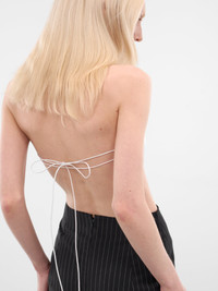 White cotton popeline shirt with spread collar, open back, and self-tie fastening at back. Featuring: • Slim fit • Cropped length • Cotton popeline construction • Spread collar • Front button placket closure • Sleeveless with open back • Self-tie fastening at back • Curved hem • Made in France • 100% Cotton • Standard sizing Model is 5'9" wearing size XS. Bust: 32" Waist: 25" Hips: 34"