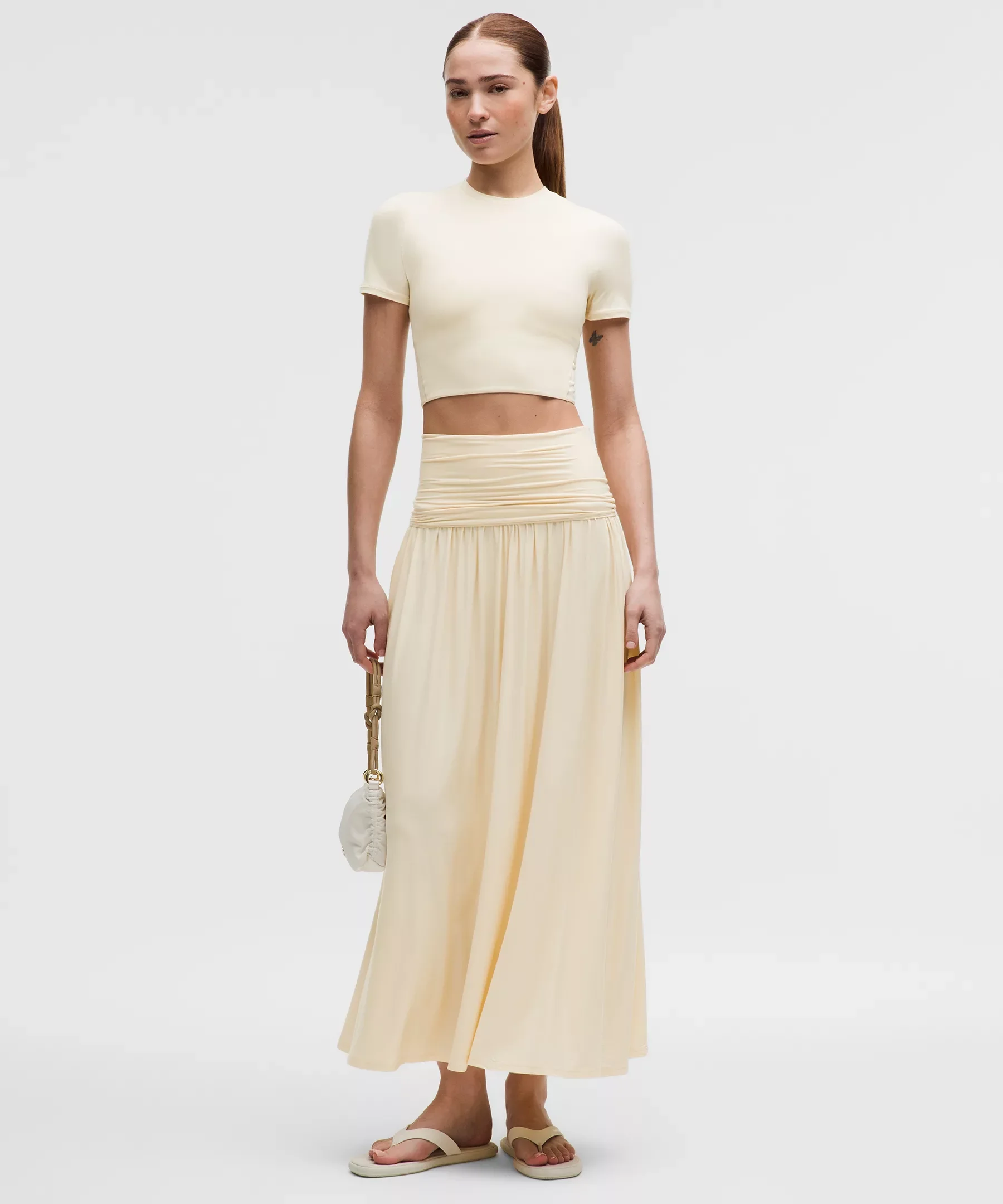 Designed for Casual Soft, Sweat-Wicking Fabric - Bodice is made from an ultra-soft, lightweight version of our Nulu™ fabric that's brushed for a luxurious feel and an elevated look. It's four-way stretch, sweat wicking, and quick-drying to keep you comfortable all day long - Soft, silk-blend modal skirt fabric is four-way stretch, sweat-wicking, quick-drying, and naturally breathable Tight Fit, Maxi Length - Contours your body - Falls from the ankle to the floor Material and care Materials Body: 79% Nylon21% Lycra Elastane - Bottom Panel: 86% Lenzing Modal8% Mulberry Silk6% Elastane Care Machine Wash Cold - Do Not Bleach - Tumble Dry Low - Do Not Iron - Do Not Dry Clean - Wash With Like Colors