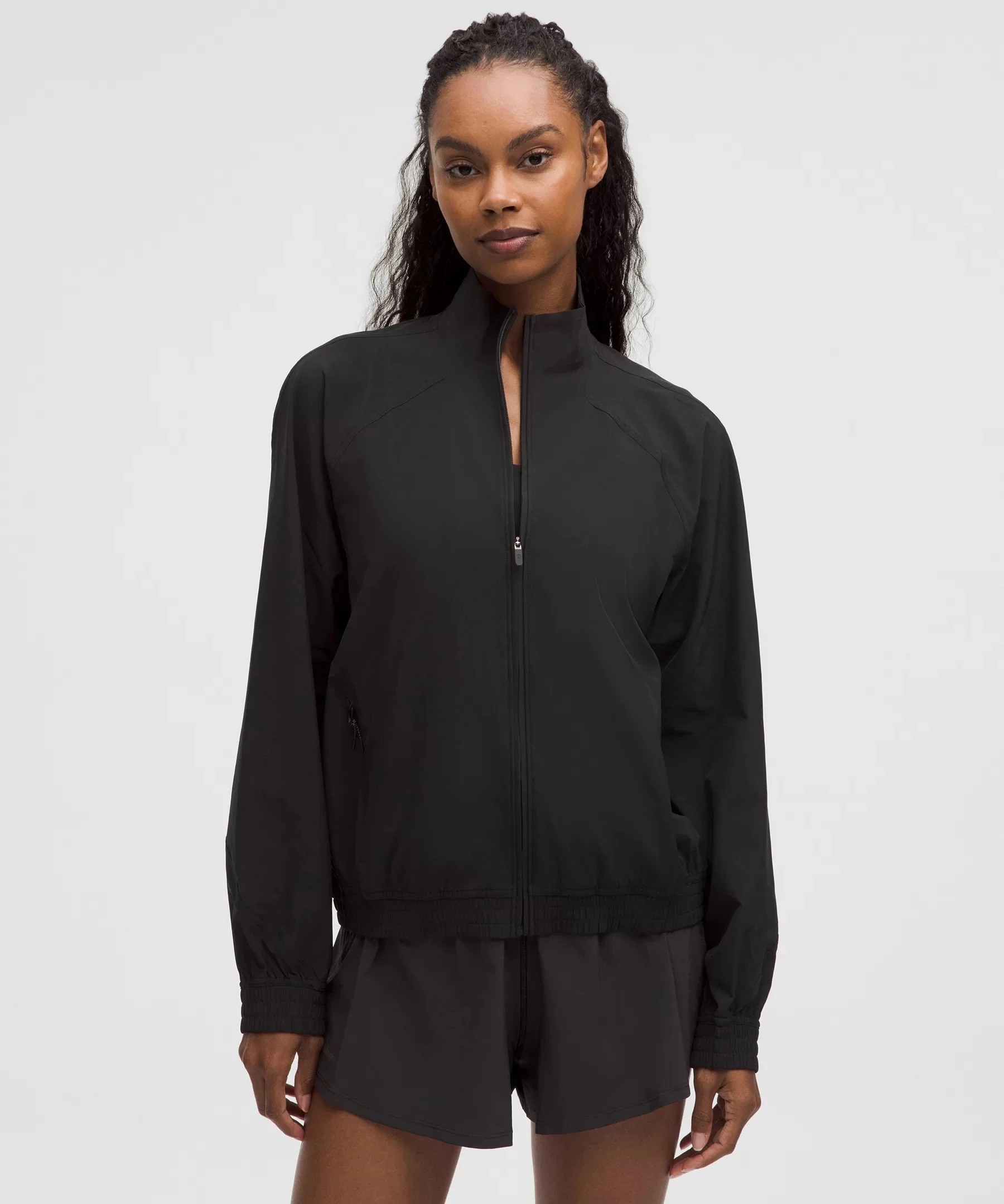 Designed for Running and Training Lightweight, Swift Fabric - Lightweight - Four-way stretch - Sweat-wicking - Quick-drying - This product contains recycled polyester made from repurposed plastic waste Relaxed Fit, Hip Length - A loose fit with a little extra room - Sits below the waistband for moderate, everyday coverage Product Features - Zippered hand pockets with hidden phone sleeve - Locker loop for easy hanging Material and care Materials Lining: 77% Recycled Polyester23% Elastomultiester - Body: 86% Recycled Polyester14% Elastane Care Machine Wash Cold - Do Not Bleach - Tumble Dry Low - Do Not Iron - Do Not Dry Clean - Wash With Like Colors