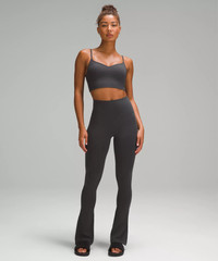 Feels Buttery-Soft and Weightless, Nulu™ Fabric So buttery soft, it feels weightless Four-way stretch Sweat-wicking Breathable Added Lycra® fibre for stretch and shape retention High Rise, Full Length Hugs your body from waist to knee Flares out subtlety from the knee to hem 32" inseam, intended to sit just off the ground for heights of 5'5"–5'8" Product Features Back drop-in pocket This collection’s great for low-impact workouts like yoga or whenever you want to feel really, really comfortable Material and care Materials Pocket: 56% Polyester33% Coolmax® polyester11% Lycra® elastane Body: 81% Nylon19% Lycra® elastane Care Wash with like colours Machine wash cold Do not bleach Tumble dry low Do not iron Do not dry clean Imported