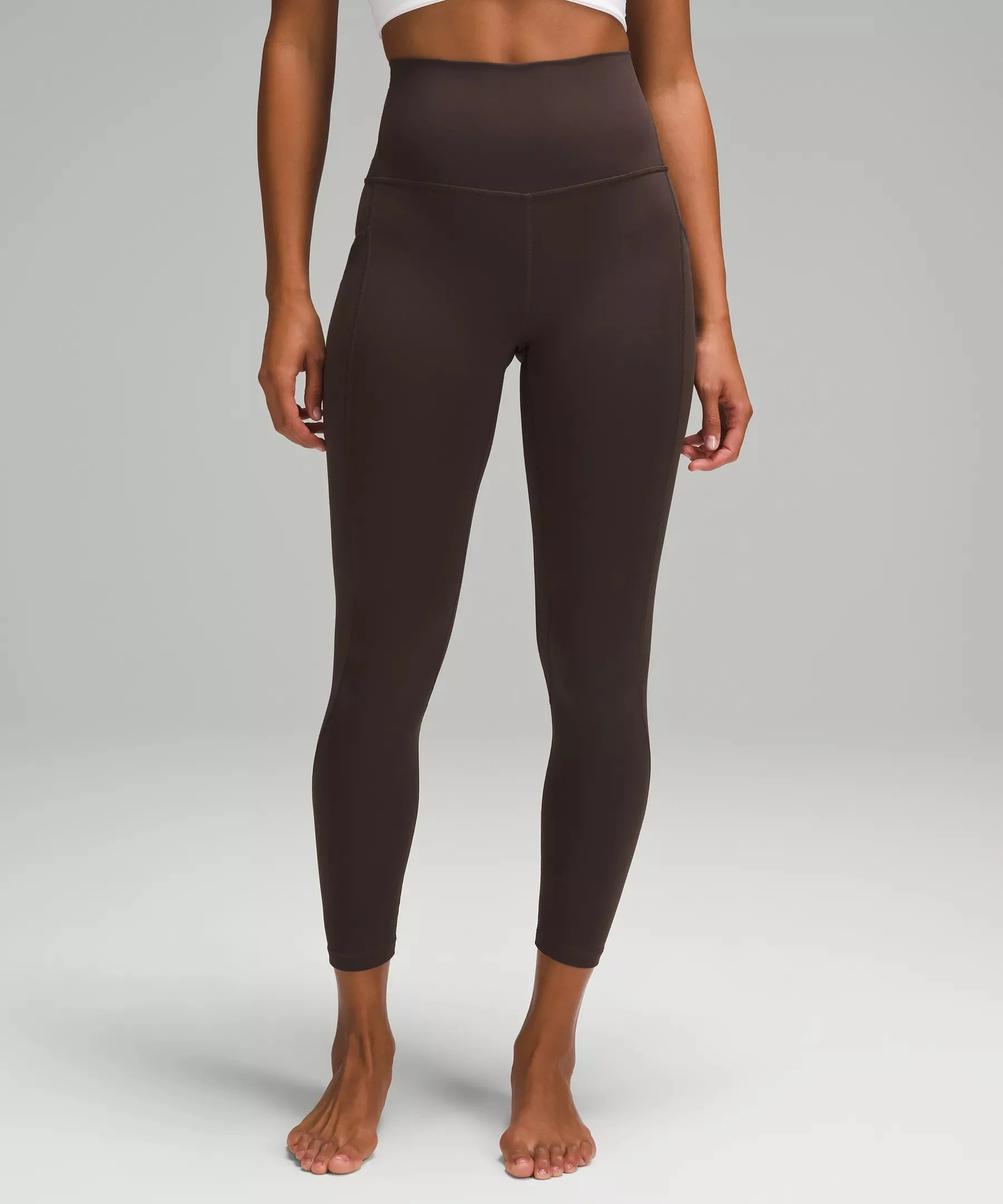 Feels Buttery-Soft and Weightless, Nulu™ Fabric So buttery soft, it feels weightless Four-way stretch Sweat-wicking Breathable Added Lycra® fibre for stretch and shape retention Lined for Coverage, High Rise, 25" Length Intended to sit above ankle Wear this light colour with confidence. Our white and light colours are lined for coverage. The second layer of fabric adds a slightly thicker feel Product Features Side drop-in pockets Back drop-in pocket can hold a key, card, or phone This collection’s great for low-impact workouts like yoga or whenever you want to feel really, really comfortable Material and care Materials Body: 81% Nylon19% Lycra® elastane Care Wash with like colours Machine wash cold Do not bleach Tumble dry low Do not iron Do not dry clean Imported