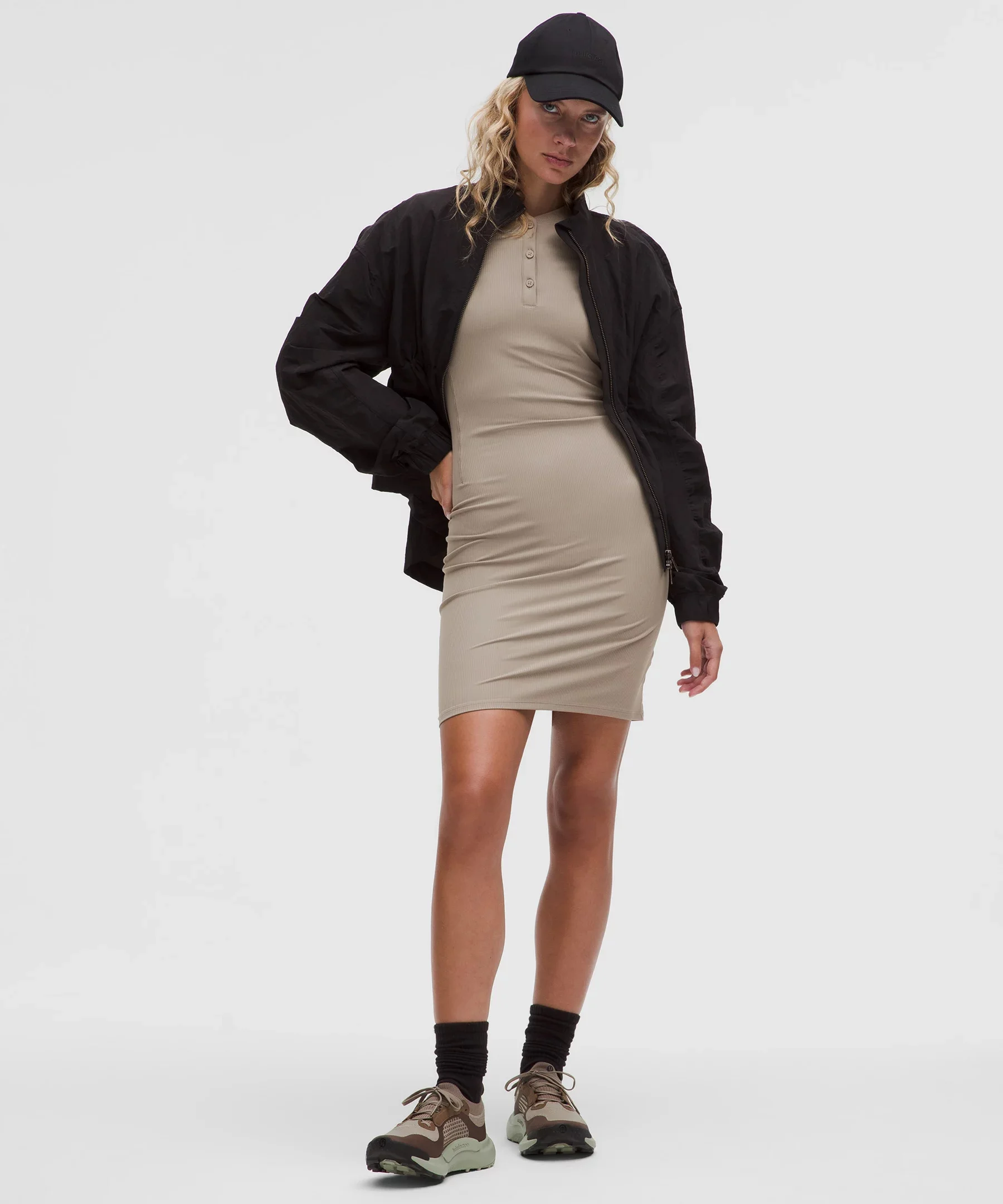 All Aligned Ribbed Long-Sleeve Henley Dress