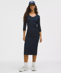 All Aligned Ribbed Long-Sleeve Midi Dress