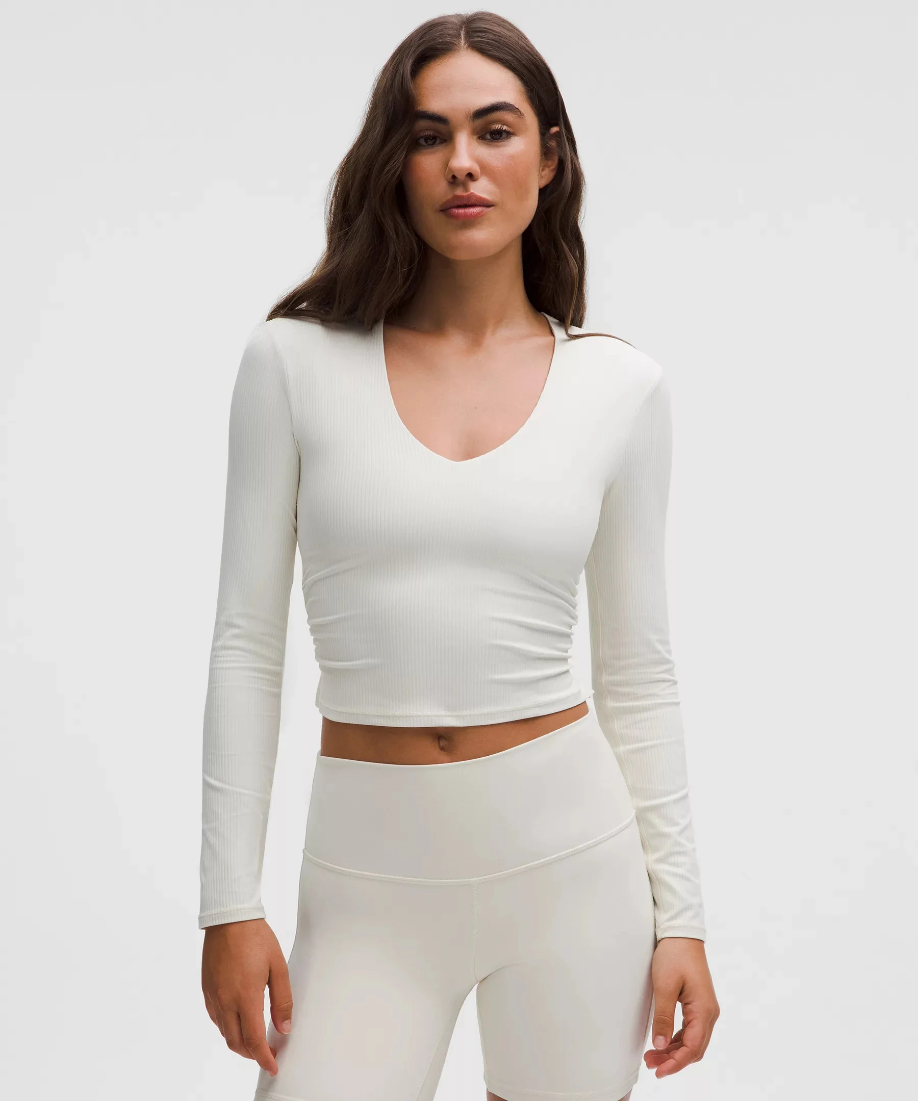 Designed for Yoga Buttery-Soft, Ribbed Nulu™ Fabric - Buttery-soft, ribbed texture - Sweat-wicking - Quick-drying - Four-way stretch - Added Lycra® fibre for stretch and shape retention - Shelf bralette is made from a lightweight version of our luxuriously soft SmoothCover™ fabric Light Support, B–D Cups - Intended to provide light support for B–D cups - Slim fit skims your body - Waist length is not too short, not too long, just right around the waistband - Intended for low-impact activities Product Features - Built-in shelf bralette for added support and coverage - Pockets for optional, removable cups - Side slits at the hems Material and care Materials Bra Lining: 83% Recycled Polyester17% Elastane - Body: 78% Nylon22% Lycra Elastane - Mesh: 89% Recycled Nylon11% Elastane Care Machine Wash Cold - Do Not Bleach - Tumble Dry Low - Do Not Iron - Do Not Dry Clean - Wash With Like Colors