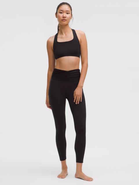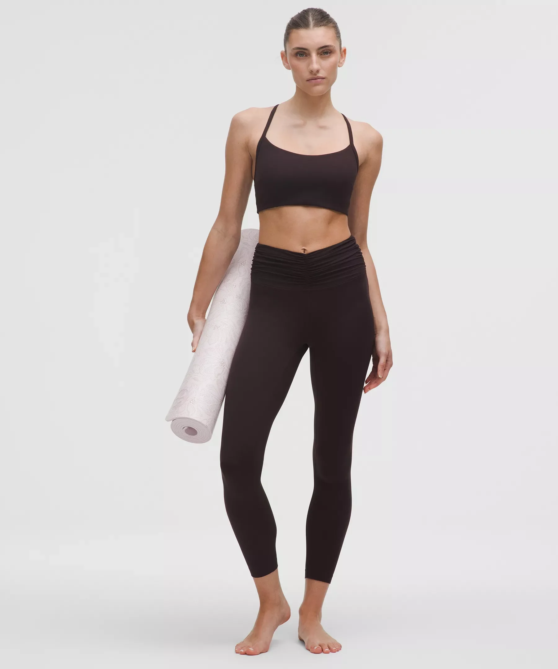 Designed for Yoga Feels Buttery-Soft and Weightless, Nulu™ Fabric - So buttery soft, it feels weightless - Four-way stretch - Sweat-wicking - Breathable - Added Lycra® fibre for stretch and shape retention High Rise, 25" Length - Intended to sit above ankle Product Features - Wide, ruched waistband is smooth next to skin - Back drop-in pocket Material and care Materials Body: 81% Nylon19% Lycra Elastane - Waistband: 90% Nylon10% Lycra Elastane Care Machine Wash Cold - Do Not Bleach - Tumble Dry Low - Do Not Iron - Do Not Dry Clean - Wash With Like Colors