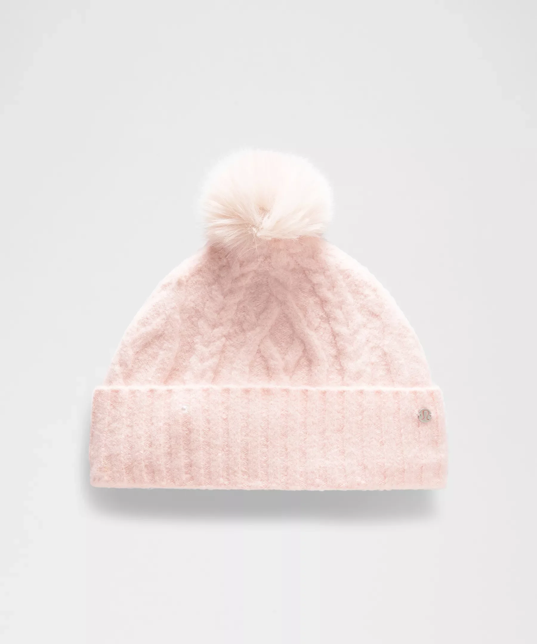 Designed for Casual Fabric - Warm alpaca wool-blend cable knit fabric is super soft and stretchy - Lined with cozy fleece fabric - Please refer to the material and care section below for full fibre content information and wash instructions - Due to the yarn fibres and construction, this garment may shed - 100% of the polyester in this product is recycled (excluding trims) - Fabric is derived from wood-based materials from well-managed forests - This product contains alpaca fibre certified to the Responsible Alpaca Standard (RAS) by Control Union (TE-00036202) Material and care Materials Body: 33% Alpaca Hair27% Modal23% Recycled Polyester15% Cotton2% Elastane - Pom Pom: 100% Polyester - Lining: 96% Polyester4% Elastane Care Hand Wash Cold - Do Not Bleach - Lay Flat To Dry - Do Not Iron - Do Not Dry Clean - N/A