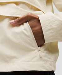 Water-Resistant, Glyde™ Fabric Water-resistant Windproof Classic Fit, Hip Length Classic fit falls away from your body with room for layering Product Features Zippered exterior pockets with a hidden phone sleeve Interior pockets hold the essentials Stowable hood Cinchable hem Back vent strategically placed to provide airflow Material and care Materials Lining: 100% Polyester Back Mesh: 89% Nylon11% Elastane Body: 100% Nylon Care Wash with like colours Machine wash cold Do not bleach Tumble dry low Do not iron Do not dry clean