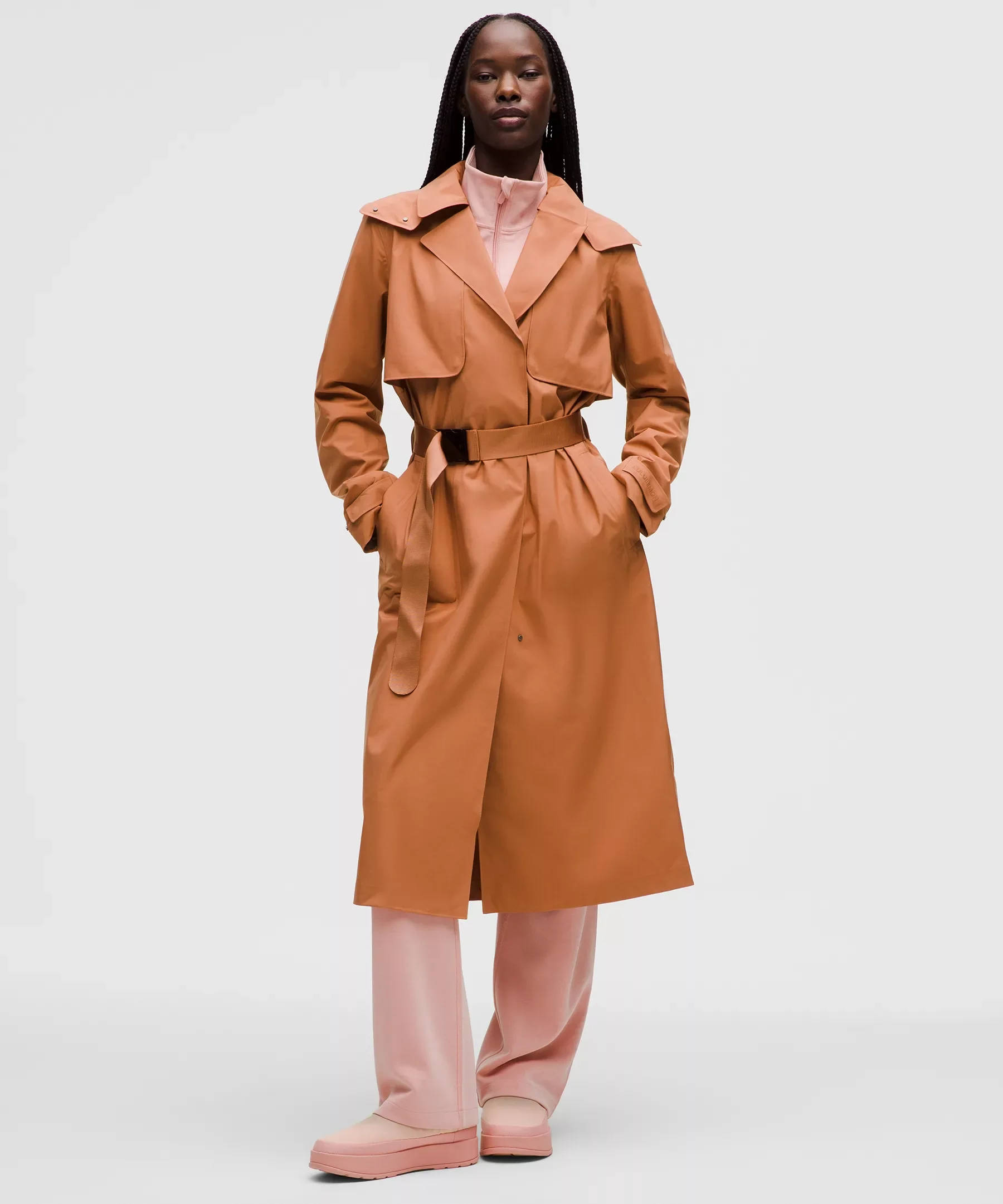 Designed for Casual Waterproof, Glyde™ Fabric - Waterproof - Seam-sealed to keep you dry - Breathable - Windproof Relaxed Fit, Calf Length - Relaxed fit feels roomy and can be worn over larger layers. Size down if you prefer a slimmer fit Product Features - Zippered exterior pockets with a hidden phone sleeve - Hidden zippered chest pocket under the storm patch - Removable hood - Back vent strategically placed to provide airflow - Adjust the belt for a custom fit. Be sure to remove it before washing - Flip up the cuffs to reveal reflective details - Undo the hidden snaps on the side seam for more room to move Material and care Materials Back Mesh Panel: 89% Nylon11% Elastane - Body: Face: 100% PolyesterMiddle: 100% PolyurethaneBack: 100% Polyester Care Machine Wash Cold - Do Not Bleach - Tumble Dry Low - Do Not Iron - Do Not Dry Clean - Remove Belt Before Wash, Wash With Like Colors