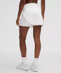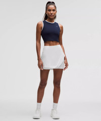 Designed for Tennis Sweat-Wicking Fabric - Sweat-wicking - Lightweight - Four-way stretch - Quick-drying - Built-in Luxtreme™ fabric liner is sweat-wicking and four way stretch with a cool, smooth feel Fit Information - High rise - Skirt length is measured at the centre front, from the top of the waistband to the hem - Skirt length by size: 0–2: 13.5", 4–6: 14", 8–10: 14.5", 12–14: 15" - Liner length for all sizes: 4.5” Product Features - Stash your stuff in the side drop-in pocket on the short liner - Back drop-in pocket - Silicone grippers on the hem prevent ride-up - Continuous drawcord Material and care Materials Body: 78% Nylon22% Elastane - Back Lining: 69% Nylon31% Lycra Elastane - Front Lining: 87% Nylon13% Lycra Elastane - Front Mesh Panel: 80% Nylon20% Elastane - Front Lower Panel: 78% Nylon22% Elastane Care Machine Wash Cold - Do Not Bleach - Tumble Dry Low - Do Not Iron - Do Not Dry Clean - Wash Separately