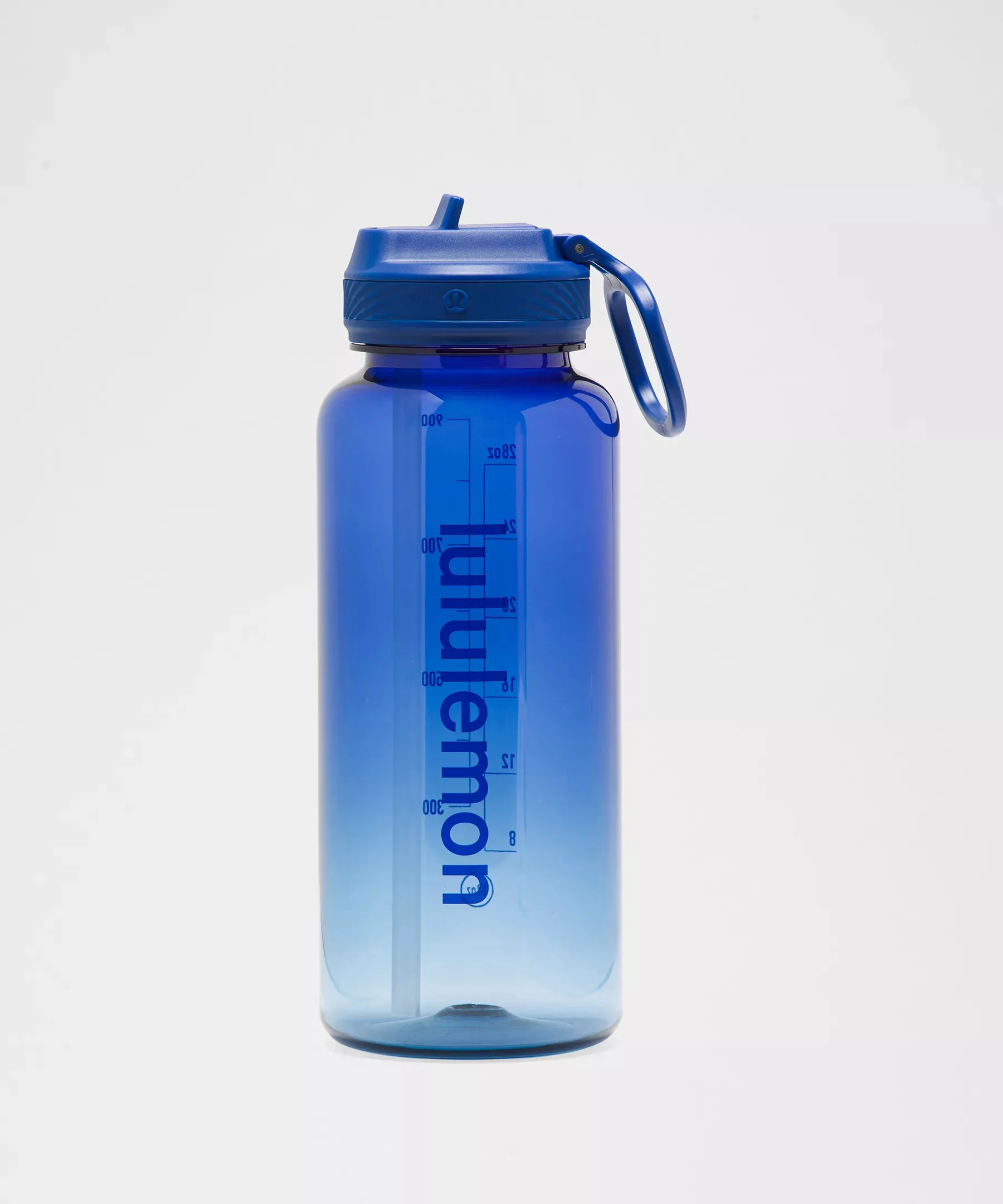 Designed for Casual Materials - Made from lightweight, food-contact safe, easy-to-clean material Dimensions and Volume - Dimensions: 24.5cm x 8.6cm (9.6" x 3.4") - Volume: 32oz (946ml) Product Features - Lid is easy to open and leakproof - Folding straw for easy sipping - Care Instructions: Wash before use. Straw is removable. Lid and straw are dishwasher-safe on top rack. Please hand wash the body of the bottle to preserve the finish. Do not use with hot water Material and care Materials Body: 100% Tritan Copolyester - Band: 100% Silicone - Top: 100% Polypropylene Care Do Not Use with Hot Water - Handwash Only - Lid - Dishwasher Top Rack - Wash Before Use