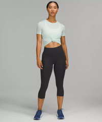 Designed for Running Weightless Coverage, Nulux™ Fabric - Weightless coverage - Engineered four-way stretch - Quick-drying - Sweat-wicking - Breathable - Feels sleek and cool to the touch - Added Lycra® fibre for stretch and shape retention High Rise, 21" Length - Intended to sit at bottom of calf Product Features - Back pocket - Continuous drawcord is easy to cinch and won't get lost in the wash - No inseam for a smooth stride Material and care Materials Body: 84% Nylon16% Lycra Elastane - Inner Waistband: 89% Nylon11% Elastane Care Machine Wash Cold - Do Not Bleach - Tumble Dry Low - Do Not Iron - Do Not Dry Clean - Wash With Like Colors