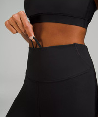 Weightless Coverage, Nulux™ Fabric Weightless coverage Engineered four-way stretch Quick-drying Sweat-wicking Breathable Feels sleek and cool to the touch Added Lycra® fibre for stretch and shape retention High Rise, 25" Length Intended to sit above ankle Product Features Back pocket Continuous drawcord is easy to cinch and won't get lost in the wash No inseam for a smooth stride Material and care Materials Body: 84% Nylon16% Lycra® elastane Care Wash with like colours Machine wash cold Do not bleach Tumble dry low Do not iron Do not dry clean Imported