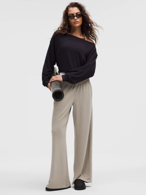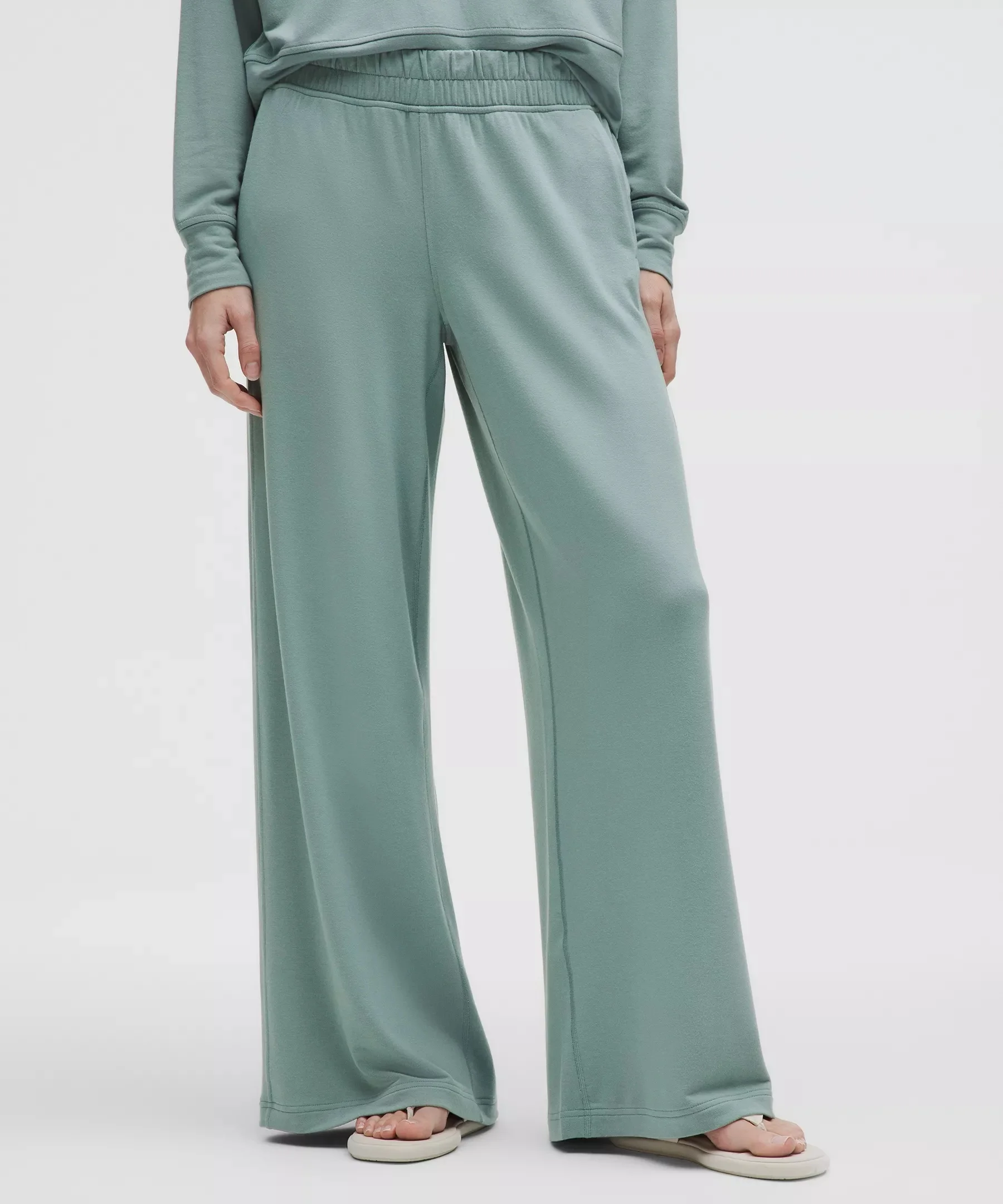 Designed for Yoga and Casual Ultra-Soft, BeCalm Fabric - Modal French terry with an ultra-soft, fuzzy interior - Supple exterior - Four-way stretch - Has a luxurious drape - 100% of the polyester in this product is recycled (excluding trims) - Fabric is derived from wood-based materials from well-managed forests Mid Rise, Full Length - Relaxed fit is roomy through glutes and thighs - Sits away from body, hip to hem Product Features - Hand pockets, one with a hidden card sleeve Material and care Materials Pocket Lining: 90% Recycled Polyester10% Lycra Elastane - Body: 95% Modal5% Elastane Care Machine Wash Cold - Do Not Bleach - Tumble Dry Low - Do Not Iron - Do Not Dry Clean - Wash With Like Colors