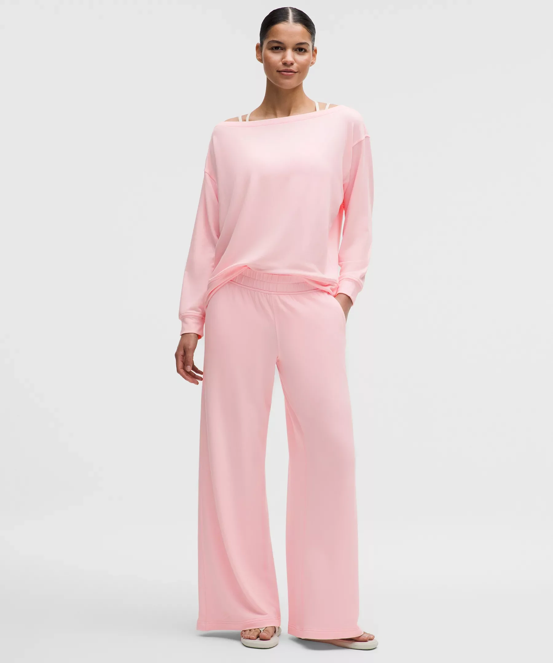 Designed for Casual Updated BeCalm Fabric - Modal French terry with an ultra-soft, fuzzy interior - Supple exterior - Four-way stretch - Has a luxurious drape - 100% of the polyester and nylon in this product is recycled (excluding trims) - Fabric is derived from wood-based materials from well-managed forests - This updated version of our BeCalm fabric retains the luxuriously drapey feel you love and has been re-engineered to reduce pilling. It also offers a slightly more lustrous appearance Mid Rise, Full Length - Relaxed fit is roomy through glutes and thighs - Sits away from body, hip to hem - 30.5" inseam, intended to skim the floor for heights of 5'5"-5'8" Product Features - Hand pockets, one with a hidden card sleeve Material and care Materials Pockets: 90% Polyester (recycled)10% Lycra Elastane - Body: 95% Modal5% Elastane Care Machine Wash Cold - Do Not Bleach - Tumble Dry Low - Do Not Iron - Do Not Dry Clean - Wash With Like Colors