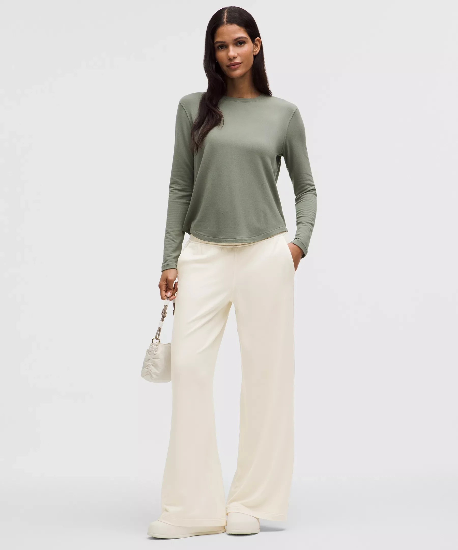 Designed for Casual Updated BeCalm Fabric - Modal French terry with an ultra-soft, fuzzy interior - Supple exterior - Four-way stretch - Has a luxurious drape - 100% of the polyester and nylon in this product is recycled (excluding trims) - Fabric is derived from wood-based materials from well-managed forests - This updated version of our BeCalm fabric retains the luxuriously drapey feel you love and has been re-engineered to reduce pilling. It also offers a slightly more lustrous appearance Mid Rise, Full Length - Relaxed fit is roomy through glutes and thighs - Sits away from body, hip to hem - 30.5" inseam, intended to skim the floor for heights of 5'5"-5'8" Product Features - Hand pockets, one with a hidden card sleeve Material and care Materials Body: 95% Modal5% Elastane - Pockets: 90% Polyester (recycled)10% Lycra Elastane Care Machine Wash Cold - Do Not Bleach - Tumble Dry Low - Do Not Iron - Do Not Dry Clean - Wash With Like Colors