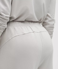 Designed for Casual Ultra-Soft, BeCalm Fabric - Modal French terry with an ultra-soft, fuzzy interior - Supple exterior - Four-way stretch - Has a luxurious drape - Fabric is derived from wood-based materials from well-managed forests Mid Rise, Full Length - Oversized fit is an exaggerated roomy fit - Full length intended to sit at ankle Product Features - Hand pockets, one with a hidden card sleeve Material and care Materials Pocket Lining: 90% Recycled Polyester10% Lycra Elastane - Body: 95% Modal5% Elastane Care Machine Wash Cold - Do Not Bleach - Tumble Dry Low - Do Not Iron - Do Not Dry Clean - Wash With Like Colors