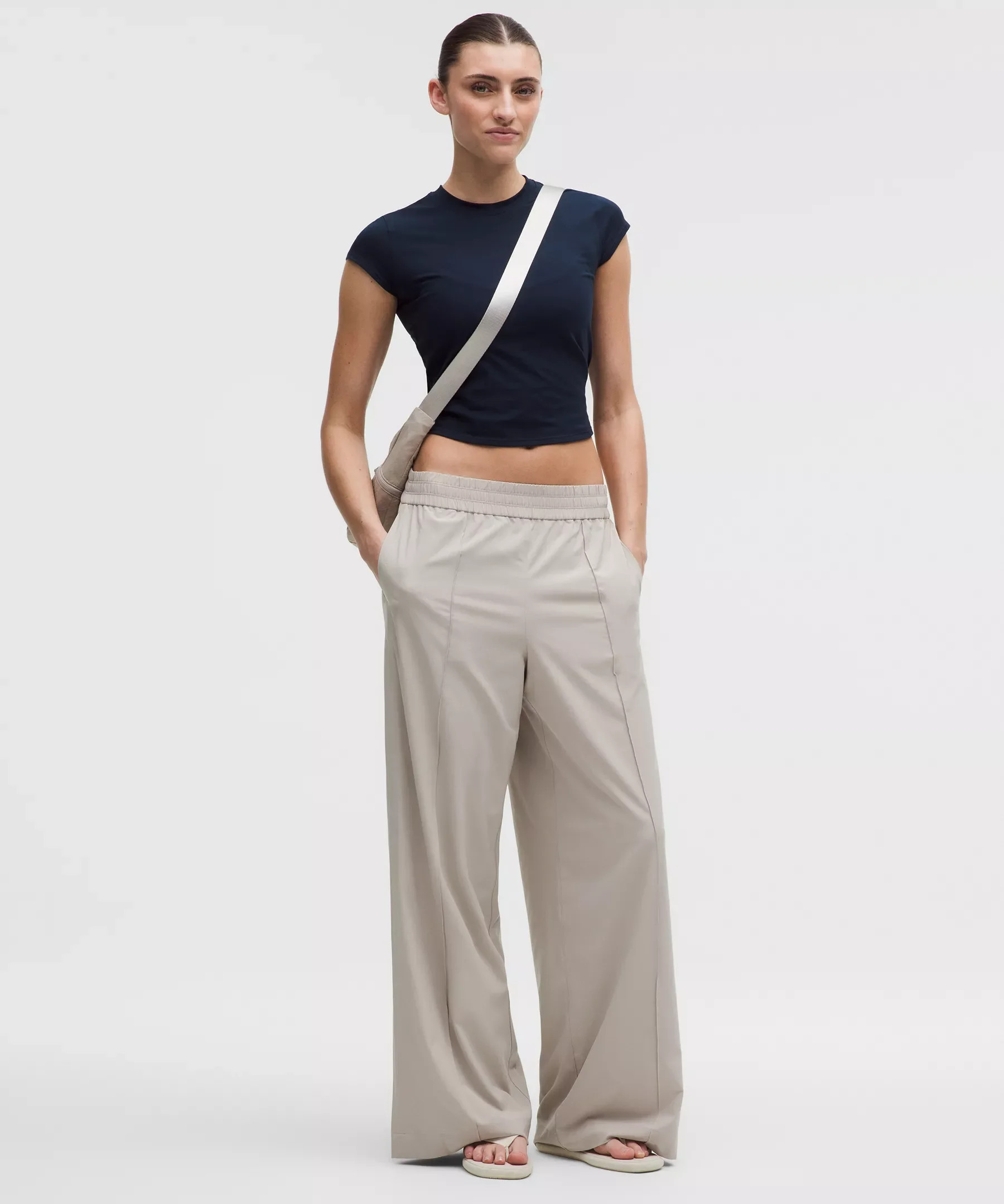Designed for Casual Lightweight, Swift Fabric - Lightweight - Four-way stretch - Sweat-wicking - Quick-drying Lined for Coverage, Mid Rise, Full Length - Relaxed fit is roomy through glutes and thighs - 29" inseam, intended to skim the floor for heights of 5'4" and under - Lined for extra coverage Product Features - Hand pockets, one with a hidden card sleeve - Elastic waistband Material and care Materials Body: 86% Polyester (recycled)14% Elastane - Pockets: 86% Polyester (recycled)14% Elastane Care Machine Wash Cold - Do Not Bleach - Tumble Dry Low - Do Not Iron - Do Not Dry Clean - Wash With Like Colors