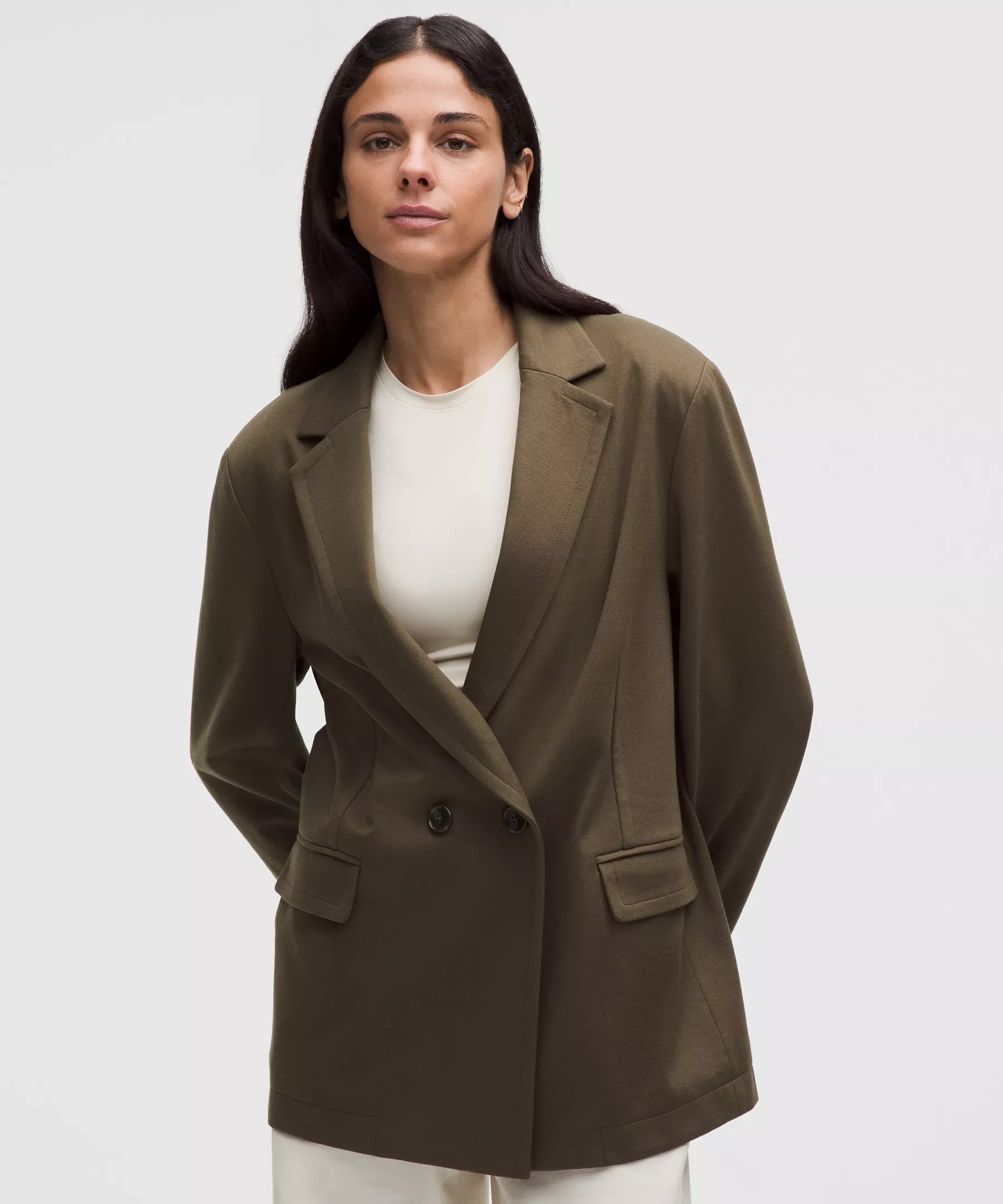 Designed for Casual Brushed, Twill Fabric - Brushed on the inside for softness and warmth - Fully lined in a smooth, sweat-wicking and quick-drying fabric Oversized Fit, Bum-Covering Length - An exaggerated fit that feels extra roomy - Long length keeps bum and hips covered Product Features - Shoulder pads add light structure - Front pockets Material and care Materials Lining: 86% Polyester (recycled)14% Elastane - Pockets: 86% Polyester (recycled)14% Elastane - Body: 58% Viscose35% Nylon7% Elastane Care Machine Wash Cold - Do Not Bleach - Tumble Dry Low - Low Iron If Needed - Do Not Dry Clean - Wash With Like Colors