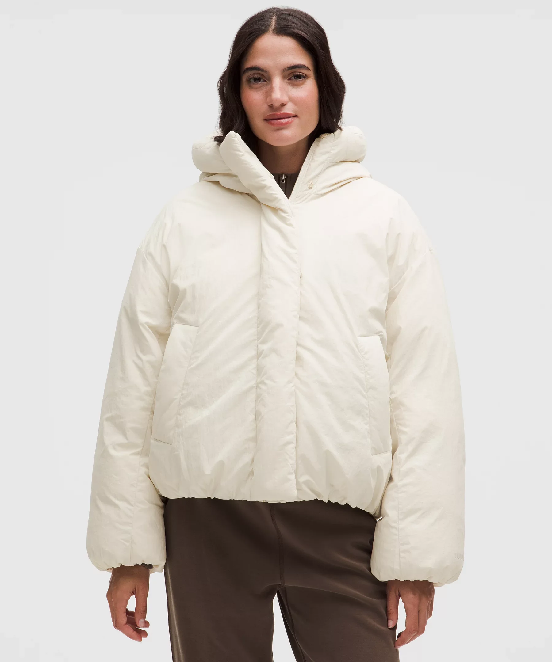 Designed for Casual Water-Resistant Fabric - Water-resistant - Windproof - Natural handfeel - 600-fill-power goose down insulates through extra loft - This product contains recycled polyester made from repurposed plastic waste - 100% of our down is certified to the Responsible Down Standard (RDS) by Control Union (TE-00036202) Oversized Fit, Hip Length - Oversized fit is purposefully large with exaggerated proportions. Size down if you prefer a slimmer fit Product Features - Zippered hand pockets with hidden phone sleeve - Two internal pockets: one zippered and one drop-in - Elastic hem locks in the warmth - Hood cinches at the back to maintain peripheral visibility - Mid warmth is designed with zoned RDS Down or PrimaLoft® insulation to regulate body temperature Material and care Materials Lining: 100% Nylon - Trim Filling: 100% Recycled Polyester - Mesh: 90% Recycled Polyester10% Lycra Elastane - Body Filling: 80% White Goose Down20% White Goose Feather - Body: 100% Nylon Care Machine Wash Cold - Do Not Bleach - Tumble Dry Low - Do Not Iron - Do Not Dry Clean - Contains Non-Textile Parts of Animal Origin - Tumble Dry Low With Clean Tennis Balls - Wash With Garment Fully Closed - Wash With Like Colors