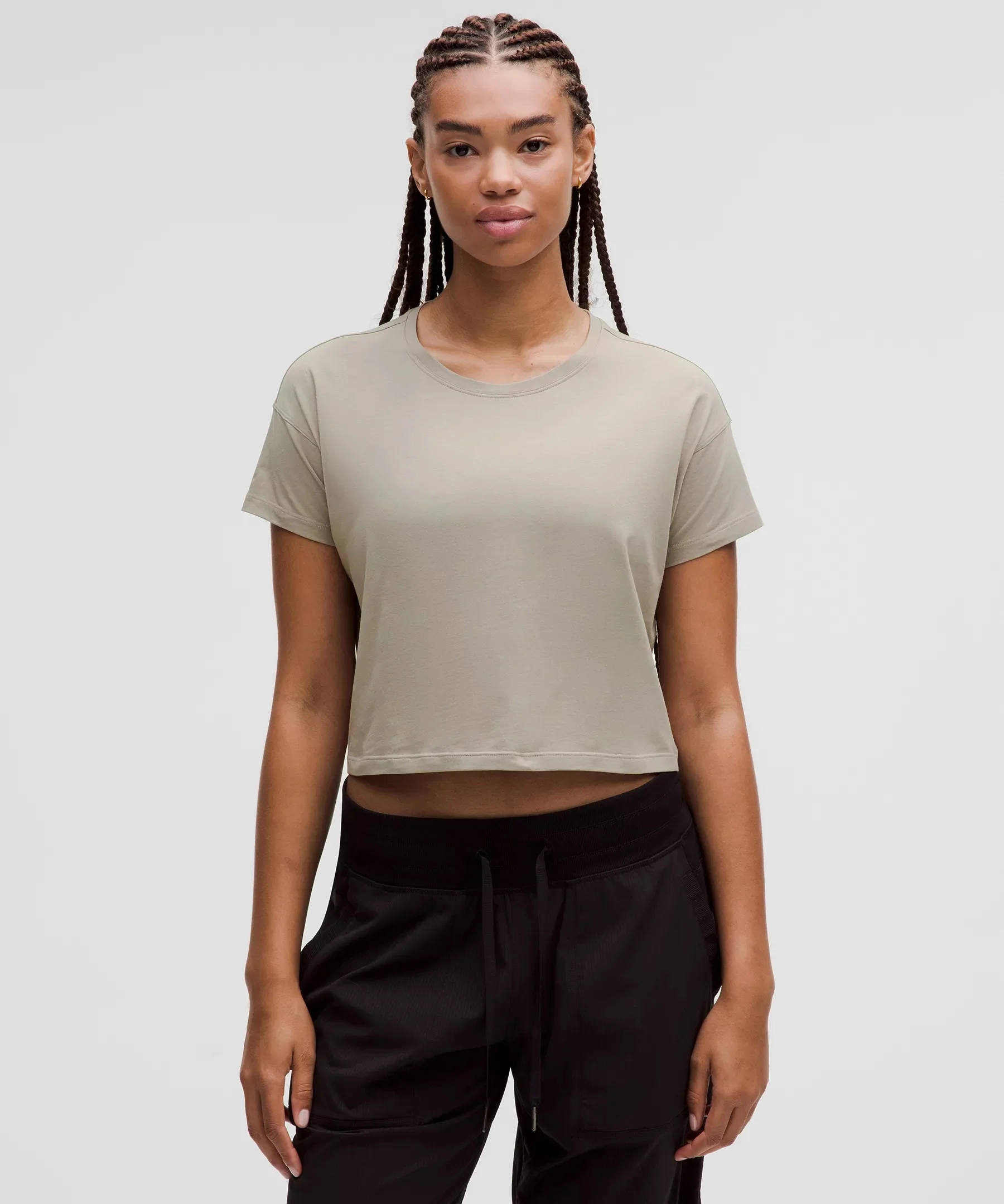 Super-Soft, Pima Cotton Fabric Soft Naturally breathable Added Lycra® fibre for stretch and shape retention Relaxed Fit, Cropped Length A loose fit with a little extra room Cut above the waist—perfect with high-rise pants Material and care Materials Body: 92% Pima Cotton8% Lycra Elastane Care Wash with like colours Machine wash cold Do not bleach Tumble dry low Do not iron Do not dry clean Imported