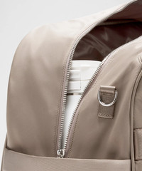 Designed for Casual Water-Repellent Fabric - Water-repellent - 100% of the polyester and nylon in this product is recycled (excluding trims) Measurements - Dimensions: W 46cm x D 23.5cm x H 30cm (18" x 9.3" x 11.8") - Volume: 28L Product Features - Removable, adjustable shoulder strap - Exterior zippered pocket expands to fit your shoes and keep sweaty gear separate - Exterior padded pocket fits a 16" laptop - Interior zippered and slip pockets to organize small items - Interior pocket designed to hold your water bottle - Clip a carabiner or your favourite accessories to the metal hardware - Trolley-compatible sleeve - Two-way zipper Material and care Materials Lining: 100% Recycled Polyester - Body: 100% Recycled Nylon Care Do Not Wash - Do Not Bleach - Do Not Tumble Dry - Do Not Iron - Do Not Dry Clean - Spot Clean