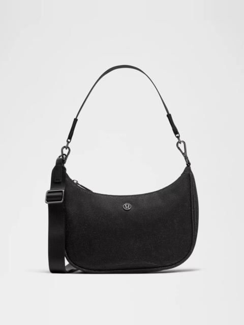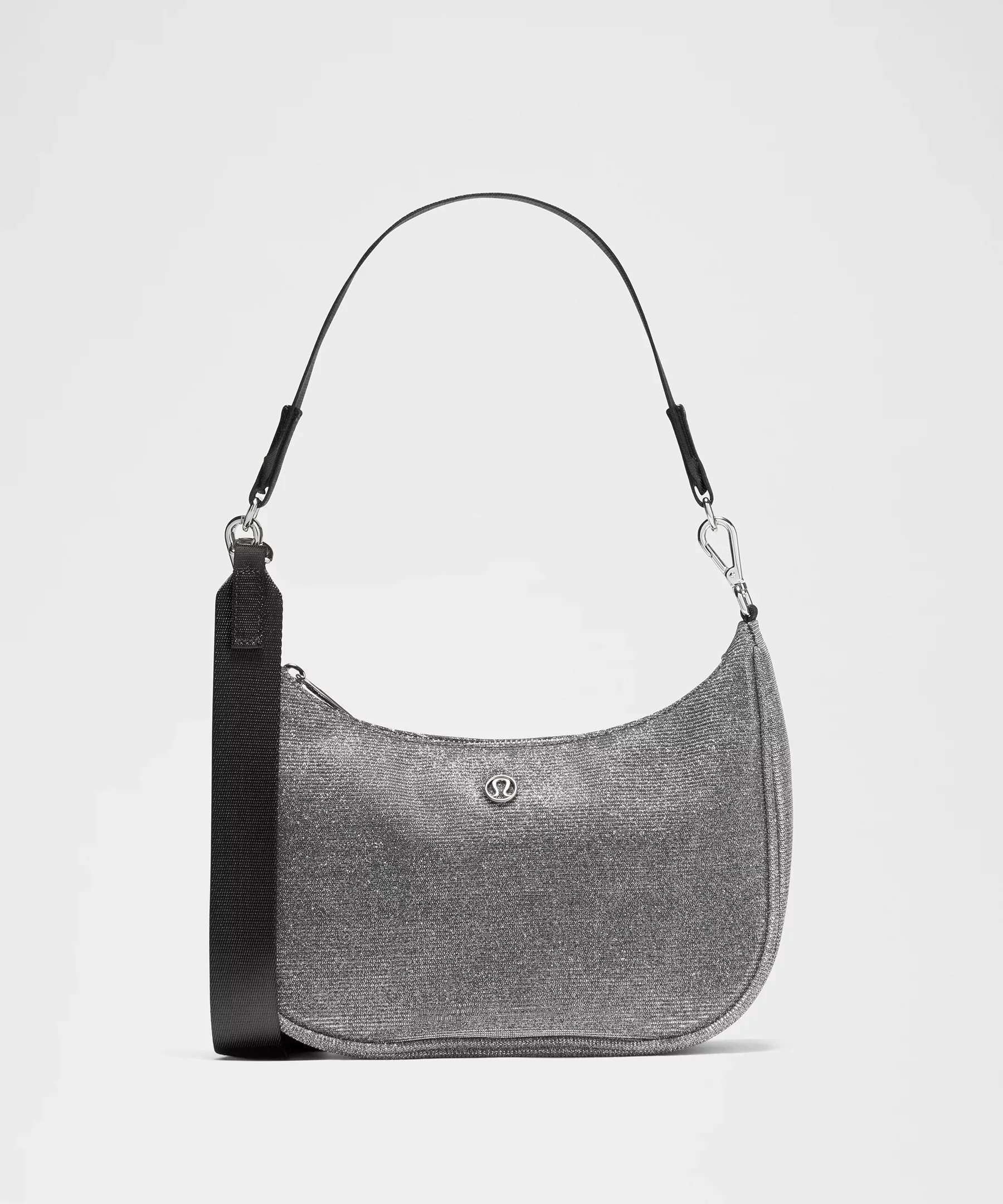 Designed for Casual Shimmery, Glitter Fabric - Please take extra care with this special fabric as tiny flecks of glitter may transfer Measurements - Dimensions: W 25.5cm x D 7.5cm x H 19.5cm (10" x 2.9" x 7.7") - Strap length when fully extended: 120cm (47.2") - Volume: 3L Product Features - Adjustable shoulder strap for comfortable carrying - Exterior zippered pocket to secure your valuables - Interior pockets to organize your small items of importance - Zippered main compartment Material and care Materials Liner: 100% Polyester (recycled) - Body: Face: 54% Metallic, 46% PolyesterBack: 100% Polyester Care Do Not Wash - Do Not Bleach - Do Not Tumble Dry - Do Not Iron - Do Not Dry Clean - Spot Clean