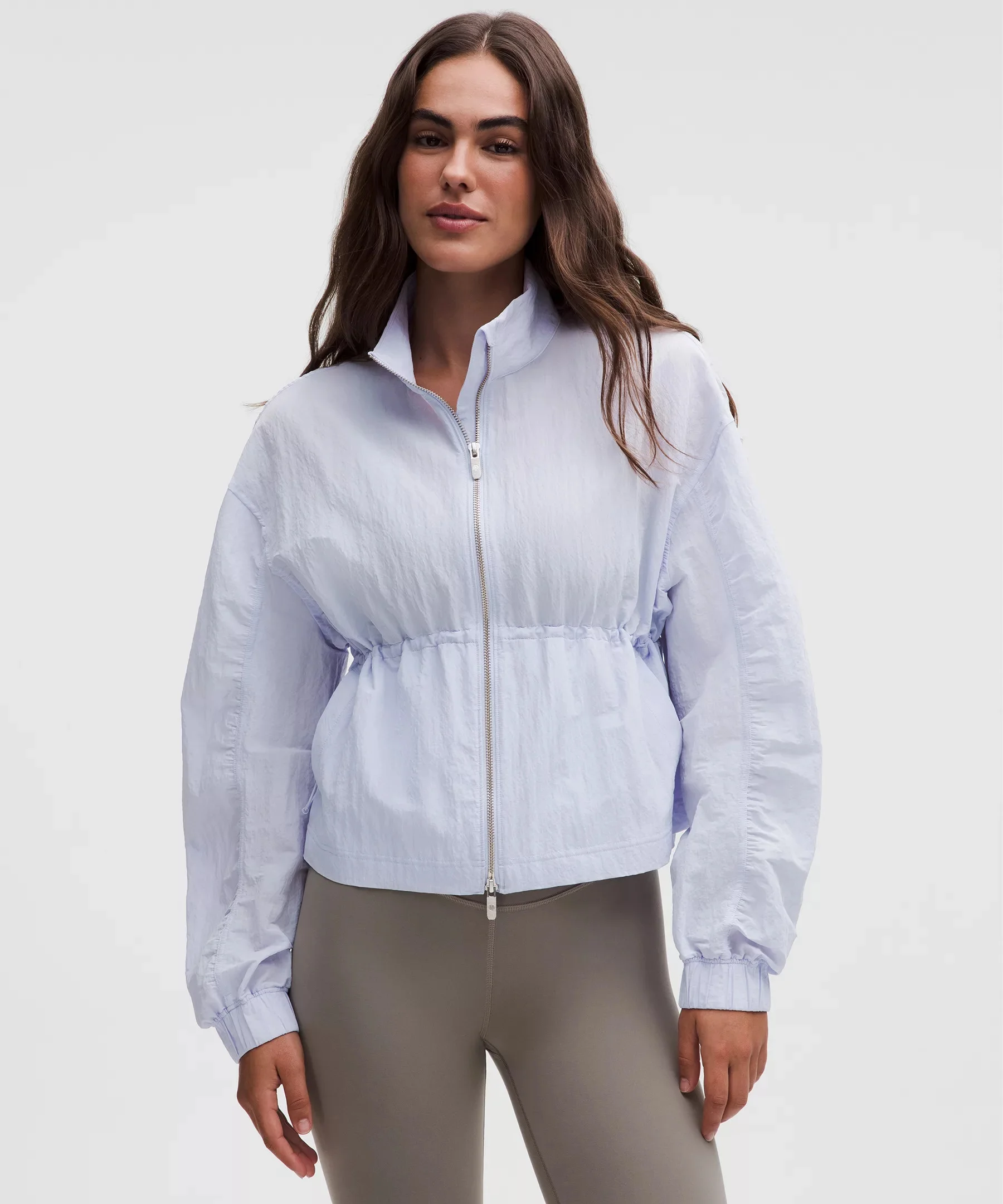 Designed for Casual Lightweight, Textured Nylon Fabric - Lightweight - Water-repellent Relaxed Fit, Waist Length - A loose fit with a little extra room - Not too short, not too long, just right around the waistband Product Features - Hand pockets, one with a hidden card sleeve - Two-way zipper - Cinchable drawcord at waist Material and care Materials Pocket Lining: 86% Recycled Polyester14% Elastane - Body: 90% Nylon10% Elastane Care Machine Wash Cold - Do Not Bleach - Tumble Dry Low - Do Not Iron - Do Not Dry Clean - Wash With Like Colors