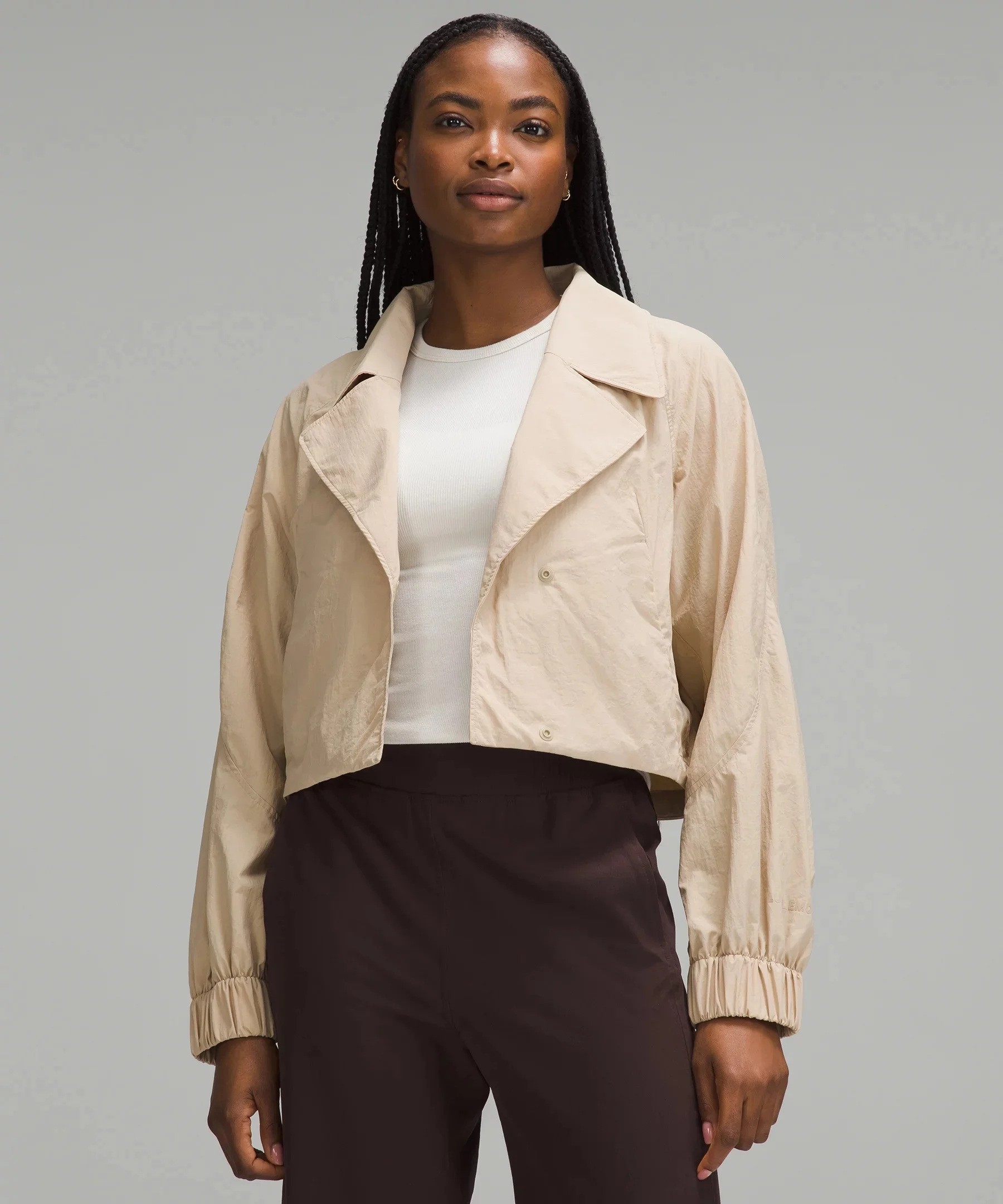 Water-Repellent, Glyde™ Fabric Water-repellent Windproof Relaxed Fit, Cropped Length Relaxed fit feels roomy and can be worn over larger layers. Size down if you prefer a slimmer fit Product Features Zippered hand pockets with hidden phone sleeve Hem cinch allows you to choose your fit Material and care Materials Body: 100% Nylon Care Wash with like colours Machine wash cold Do not bleach Tumble dry low Do not iron Do not dry clean Imported