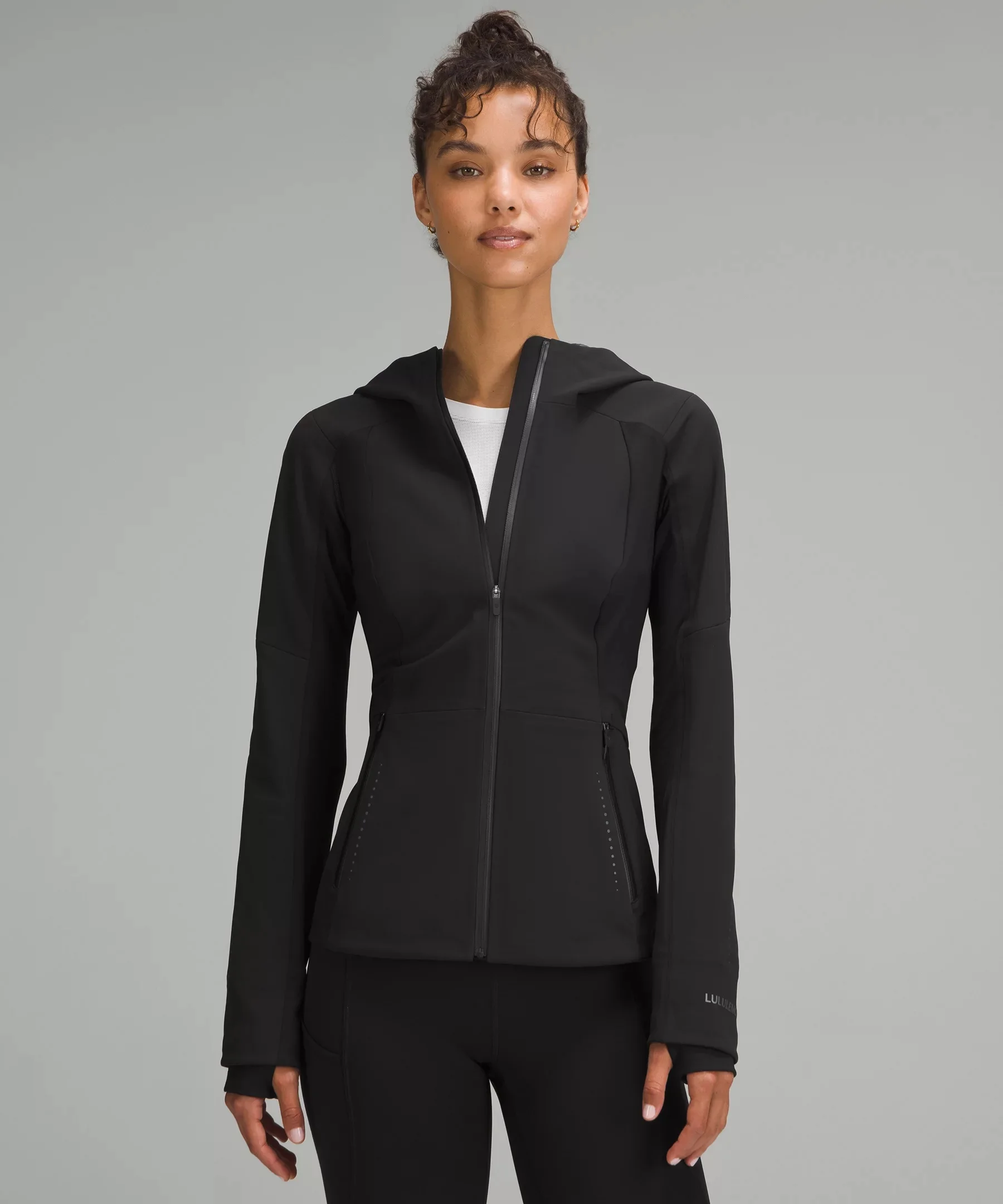Waterproof, RepelShell™ Fabric Waterproof Windproof Breathable Four-way stretch Super-soft fleece backing Four-way stretch, water-repellent tech fleece fabric is brushed for warmth Slim Fit, Hip Length Slim fit skims your body Product Features Zippered exterior pockets with a hidden phone sleeve Zippered back pocket Hood cinches at the back to maintain peripheral visibility Reflective details Thumbholes Material and care Materials Side Panels: 82% Nylon18% Lycra Elastane Pocket Lining: 100% Recycled Polyester Body: 95% Polyester5% Elastane Care Wash with like colours Machine wash cold Do not bleach Tumble dry low Do not iron Do not dry clean Imported