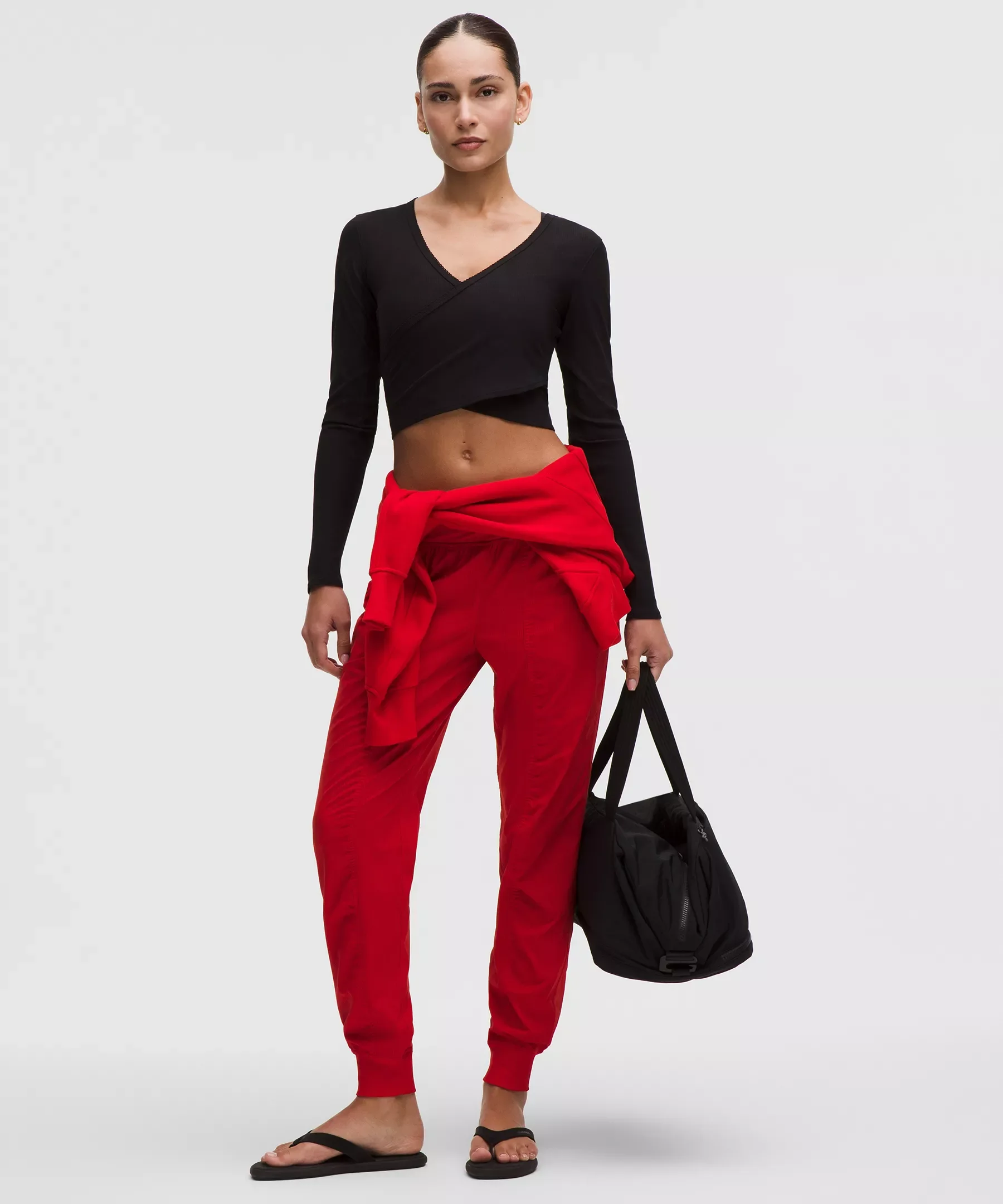 Designed for Casual Lightweight, Swift Fabric - Lightweight - Two-way stretch - Luxtreme™ fabric waistband is sweat-wicking and four-way stretch - Added Lycra® fibre for stretch and shape retention Mid Rise, Full Length - Classic fit is an easy fit that floats away from your body - Full length intended to sit at ankle Product Features - Front hand pockets with hidden zipper pocket and card sleeve - Waistband drawcord helps you customize the fit Material and care Materials Pockets: 86% Polyester (recycled)14% Elastane - Waistband: 88% Nylon12% Lycra Elastane - Body: 94% Nylon6% Elastane Care Machine Wash Cold - Do Not Bleach - Tumble Dry Low - Do Not Iron - Do Not Dry Clean - Wash With Like Colors