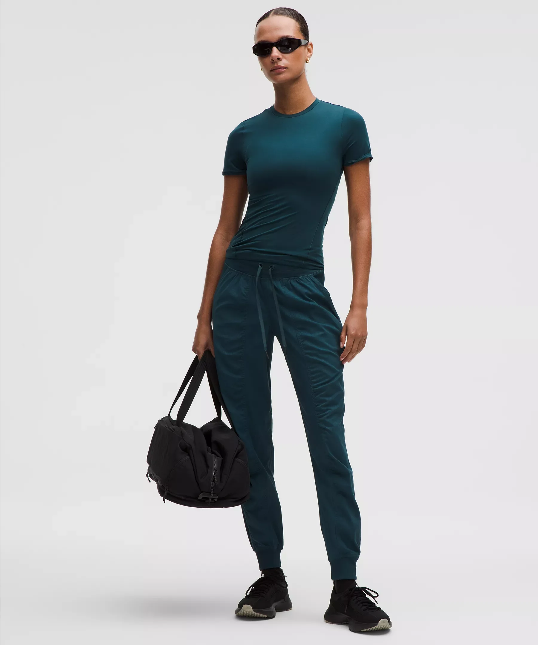 Designed for Casual Lightweight, Swift Fabric - Lightweight - Two-way stretch - Luxtreme™ fabric waistband is sweat-wicking and four-way stretch - Added Lycra® fibre for stretch and shape retention Mid Rise, Full Length - Classic fit is an easy fit that floats away from your body - Full length intended to sit at ankle Product Features - Front hand pockets with hidden zipper pocket and card sleeve - Waistband drawcord helps you customize the fit Material and care Materials Waistband: 88% Nylon12% Lycra Elastane - Pockets: 86% Recycled Polyester14% Elastane - Body: 94% Nylon6% Elastane Care Machine Wash Cold - Do Not Bleach - Tumble Dry Low - Do Not Iron - Do Not Dry Clean - Wash With Like Colors
