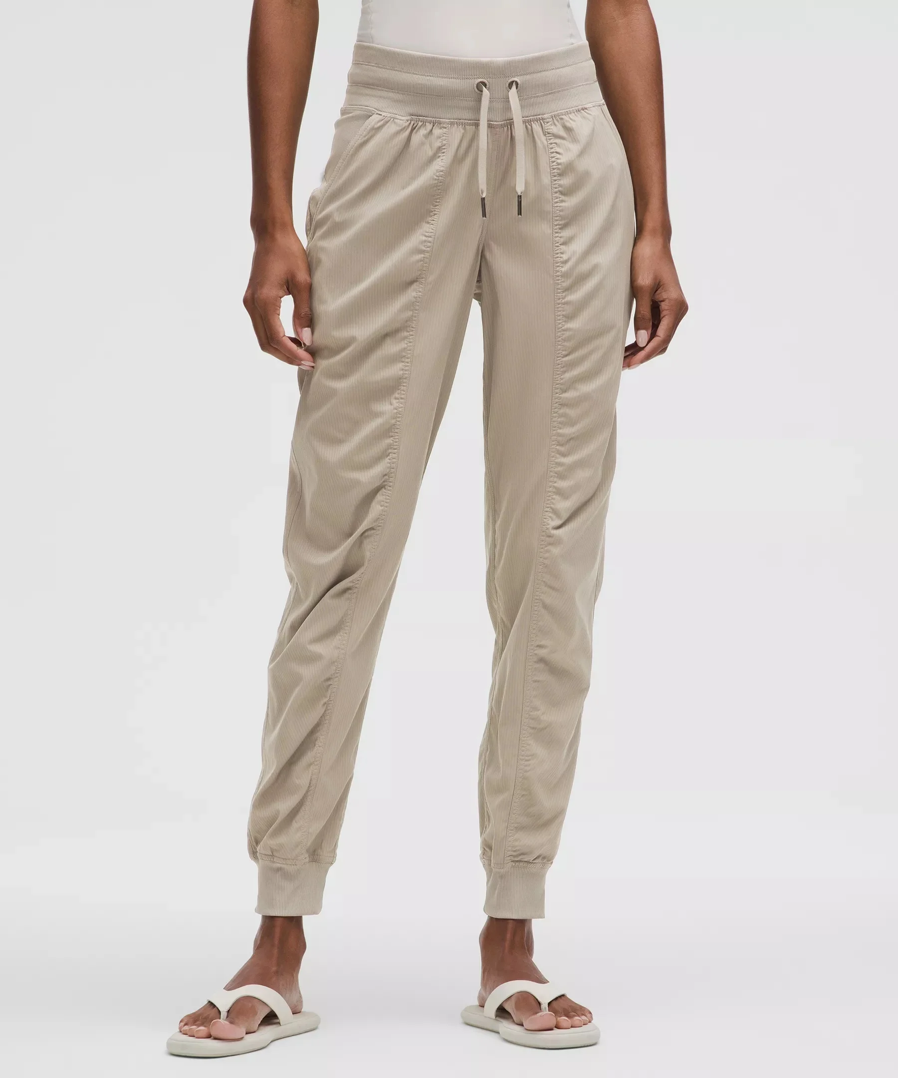Designed for Casual Lightweight, Swift Fabric - Lightweight - Two-way stretch - Luxtreme™ fabric waistband is sweat-wicking and four-way stretch - Added Lycra® fibre for stretch and shape retention Mid Rise, Full Length - Classic fit is an easy fit that floats away from your body - Full length intended to sit at ankle Product Features - Front hand pockets with hidden zipper pocket and card sleeve - Waistband drawcord helps you customize the fit Material and care Materials Waistband: 88% Nylon12% Lycra Elastane - Pockets: 86% Recycled Polyester14% Elastane - Body: 94% Nylon6% Elastane Care Wash With Like Colors - Do Not Bleach - Tumble Dry Low - Do Not Iron - Do Not Dry Clean - Wash With Like Colors