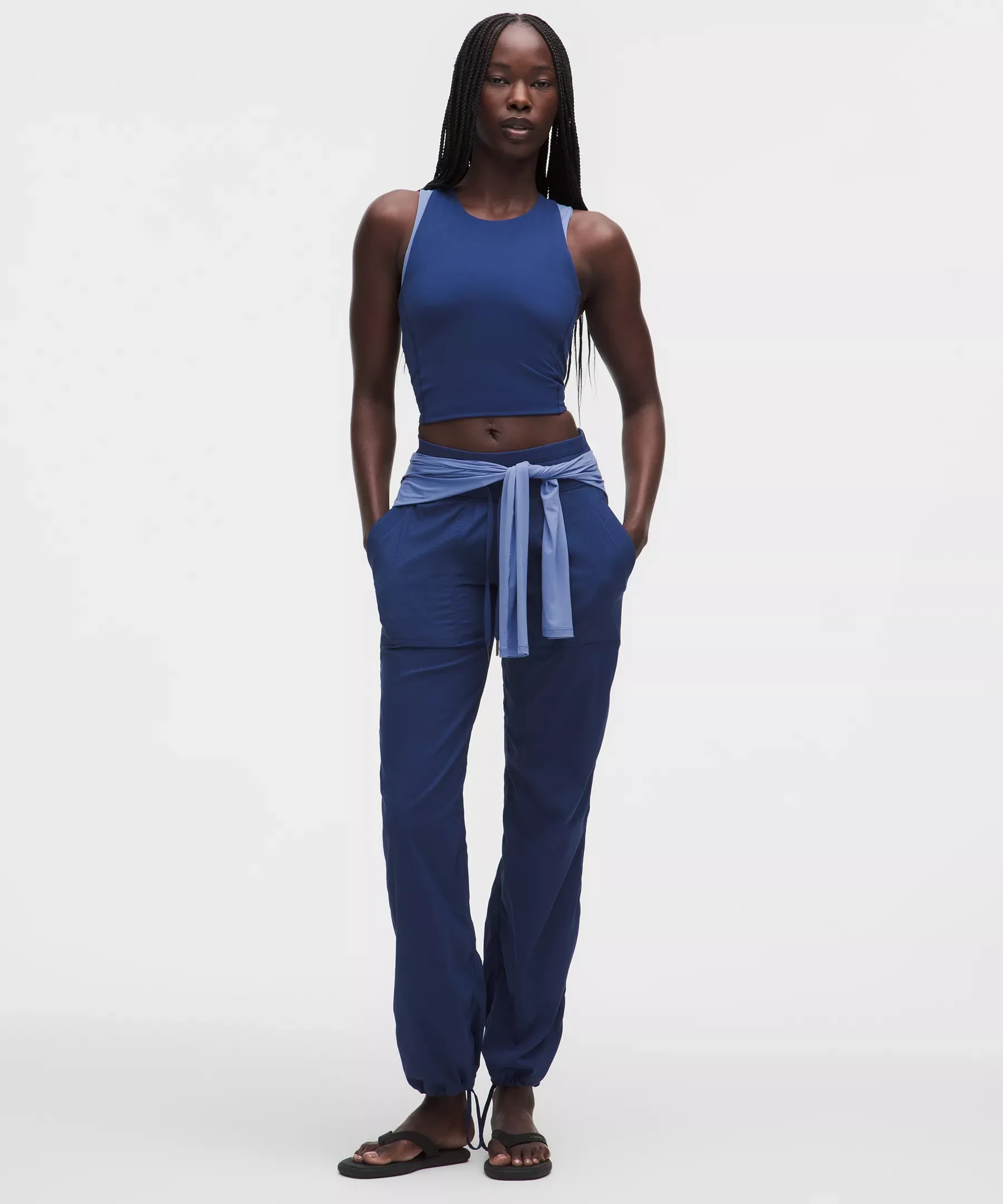 Designed for Casual Lightweight, Swift Fabric - Lightweight - Two-way stretch Mid Rise, Full Length - Classic fit is an easy fit that floats away from your body - 31.5" inseam, intended to sit below ankle for heights of 5'5"–5'8" Product Features - Waistband drawcord helps you customize the fit - Hand pockets, one with a hidden pocket for small items - Hem drawcords let you adjust your look Material and care Materials Body: 94% Nylon6% Elastane - Waistband: 88% Nylon12% Lycra Elastane Care Machine Wash Cold - Do Not Bleach - Tumble Dry Low - Do Not Iron - Do Not Dry Clean - Wash With Like Colors