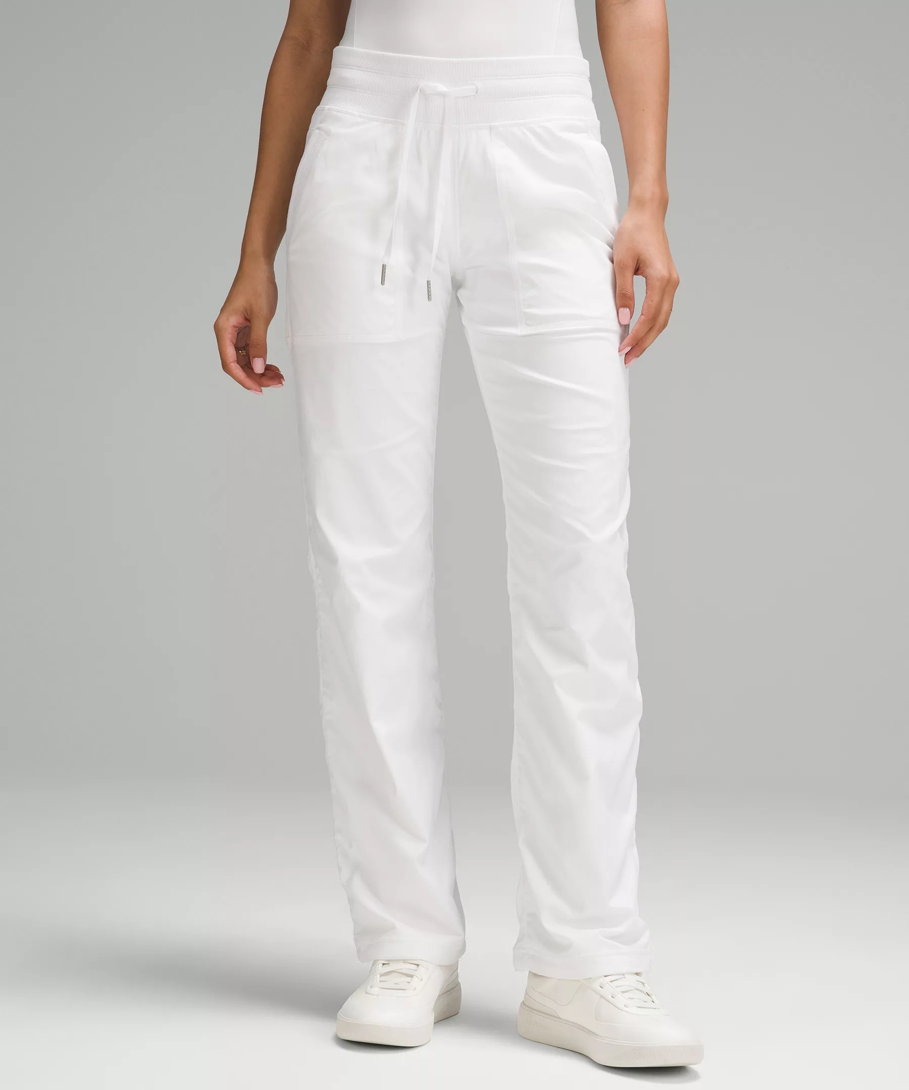 Lightweight, Swift Fabric Lightweight Two-way stretch Wear this light colour with confidence. Our white and light colours are lined with sweat-wicking Coolmax® fabric for coverage. The liner adds a thicker feel. Mid Rise, Full Length Classic fit is an easy fit that floats away from your body 33.5" inseam, intended to sit below the ankle for heights of 5'9" and above Product Features Waistband drawcord helps you customize the fit Hand pockets with hidden pocket for small items Material and care Materials Lining: 90% Recycled Polyester10% Lycra Elastane Waistband: 88% Nylon12% Lycra Elastane Body: 94% Nylon6% Elastane Care Wash with like colours Machine wash cold Do not bleach Tumble dry low Do not iron Do not dry clean Imported