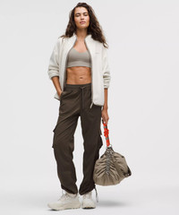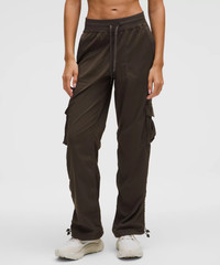 Designed for Casual Lightweight, Swift Fabric - Lightweight - Water-repellent - Two-way stretch Mid Rise, Full Length - This relaxed-fit version of our Dance Studio Pant feels roomier throughout the hips and thighs. Consider sizing down for a less relaxed fit - Full length intended to sit at ankle Product Features - Hand pockets, one with a hidden card sleeve - Back pockets - Cargo pockets - Drawcord to customize fit - Cinchable hems let you adjust the look Material and care Materials Body: 94% Nylon6% Elastane - Waistband: 88% Nylon12% Lycra Elastane - Pocket: 86% Recycled Polyester14% Elastane Care Machine Wash Cold - Do Not Bleach - Tumble Dry Low - Do Not Iron - Do Not Dry Clean - Wash With Like Colors