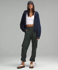Lightweight, Swift Fabric Lightweight Water-repellent Two-way stretch Mid Rise, Full Length This new relaxed-fit version of our Dance Studio Pant feels roomier throughout the hips and thighs. Consider sizing down for a less relaxed fit. Full length intended to sit at ankle Product Features Hand pockets with hidden card sleeve Back pockets Cargo pockets Drawcord to customize fit Cinchable hems let you adjust the look Material and care Materials Pocket: 86% Recycled Polyester14% Elastane Waistband: 88% Nylon12% Lycra Elastane Body: 94% Nylon6% Elastane Care Wash with like colours Machine wash cold Do not bleach Tumble dry low Do not iron Do not dry clean Imported