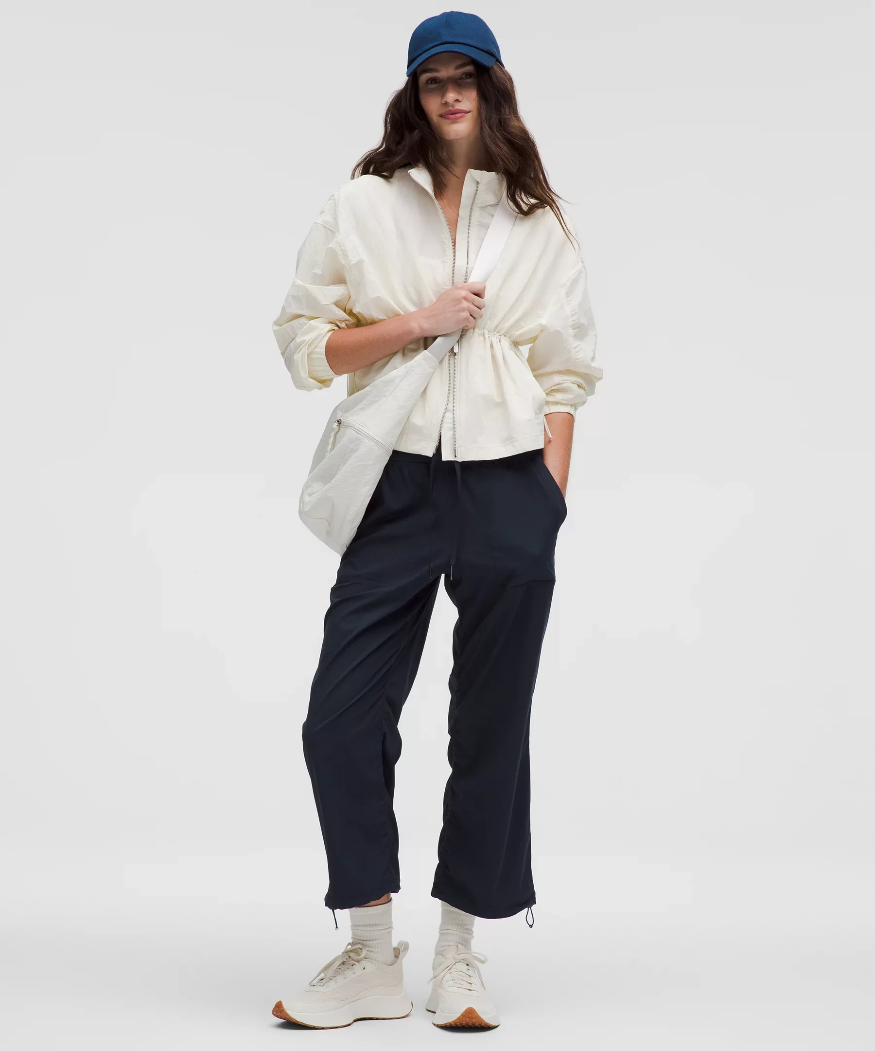 Designed for Casual Lightweight, Swift Fabric - Lightweight - Two-way stretch - Luxtreme™ fabric waistband is sweat-wicking and four-way stretch with added Lycra® Mid Rise, Cropped Length - Relaxed fit is roomy through glutes and thighs - Intended to sit above ankle Product Features - Hand pockets, one with a hidden pocket for small items - Back pockets - Waistband drawcord helps you customize the fit - Cinchable hems let you adjust the look Material and care Materials Waistband: 88% Nylon12% Lycra Elastane - Pocket Lining: 86% Recycled Polyester14% Elastane - Body: 94% Nylon6% Elastane Care Machine Wash Cold - Do Not Bleach - Tumble Dry Low - Do Not Iron - Do Not Dry Clean - Wash With Like Colors