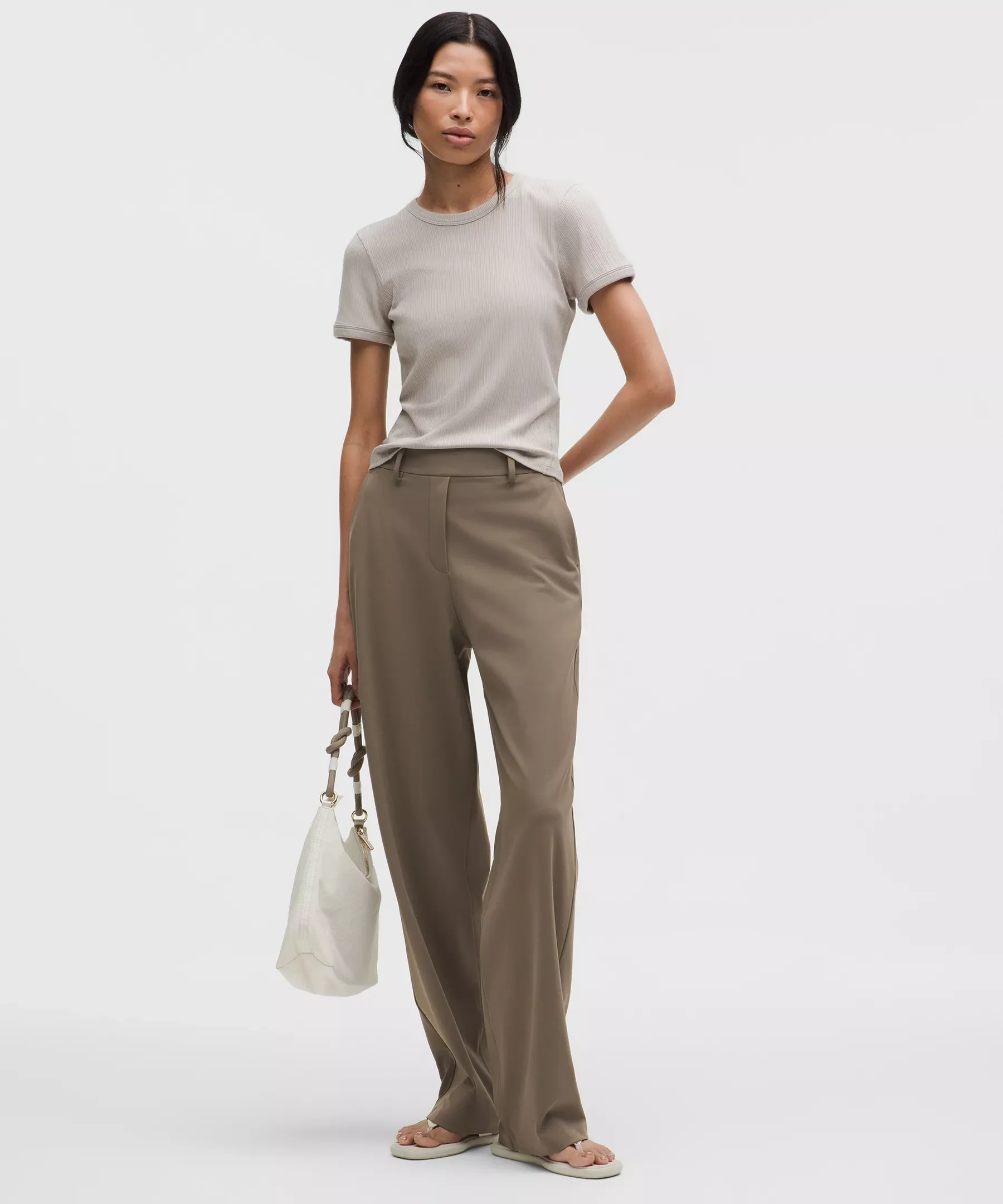 Designed for Casual Sweat-Wicking, Luxtreme™ Fabric - Sweat-wicking - Four-way stretch - Breathable - Feels cool to the touch - Added Lycra® fibre for stretch and shape retention High Rise, Full Length - Classic fit is an easy fit that floats away from your body - Falls straight down from hip to hem - 29.5" inseam, intended to skim the floor for 5'4" and under Product Features - Hand pockets, one with a card sleeve - Back welt pockets are stitched closed—snip open to use - Cinch the interior drawcord to customize your fit - Faux fly - Functional belt loops Material and care Materials Body: 69% Nylon31% Lycra Elastane - Pockets: 86% Polyester (recycled)14% Elastane Care Machine Wash Cold - Do Not Bleach - Tumble Dry Low - Low Iron If Needed - Do Not Dry Clean - Wash With Like Colors